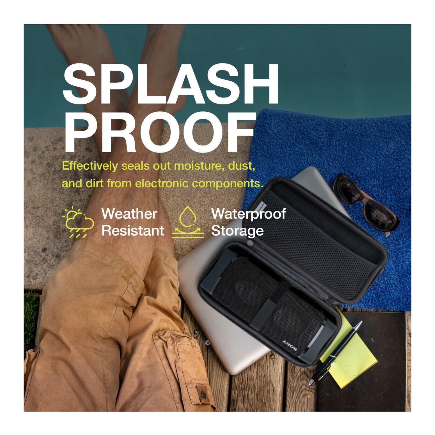 When you’re not toting your Sony speaker around, this impact-resistant case still offers storage space and plenty of cushioning in the interior for other electronic gadgets and accessories that need protection from moisture and dust. Store a mobile router, laptop battery, adapter, mouse, cables and earphones, USB flash drives, memory cards, and more.
