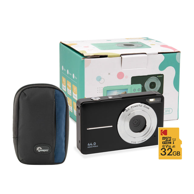 Koah 44MP FHD Point and Shoot Digital Camera with 16X Power Zoom (Black) and 32GB Card Bundle