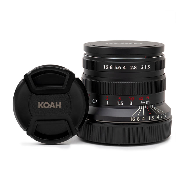 The Koah Artisans Series 55mm f/1.8 Large Aperture Manual Focus Lens features a 37-degree angle of view and minimum focusing range of 19.7 feet. It offers a large f/1.8 aperture with 12-blade diaphragm design. This lens is compatible with Nikon Z mount cameras and accepts 49mm filters.