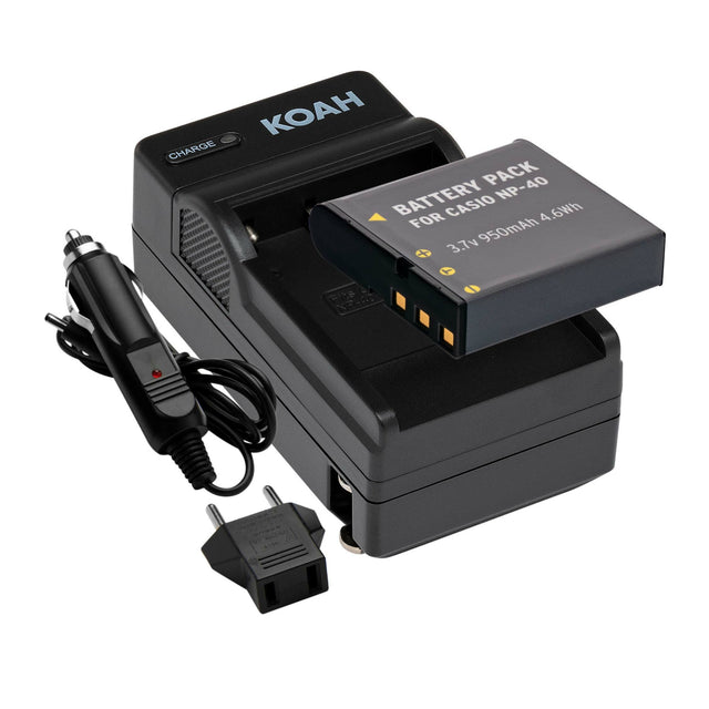 Koah Rechargeable Lithium-Ion Battery and Charger Kit Compatible with Casio NP-40 and Kodak LB-060