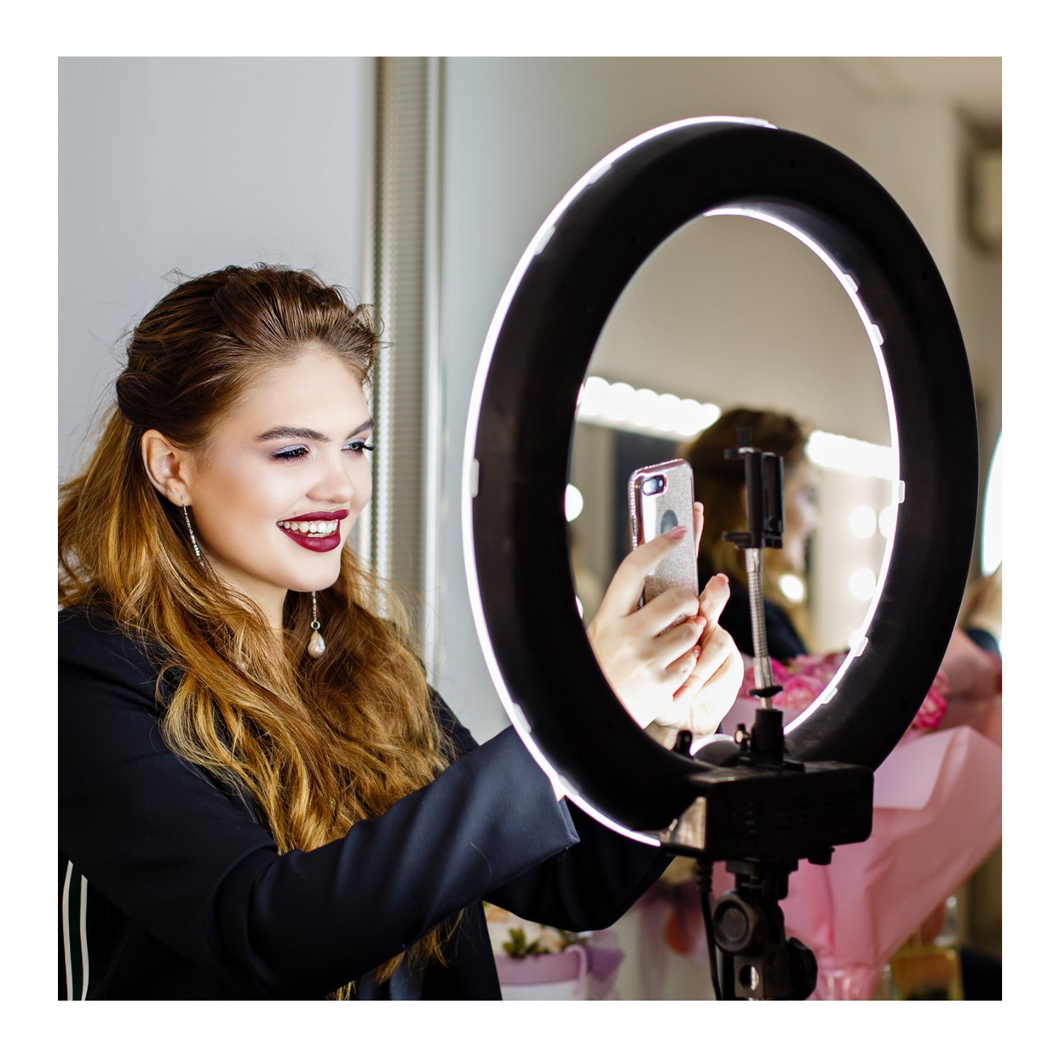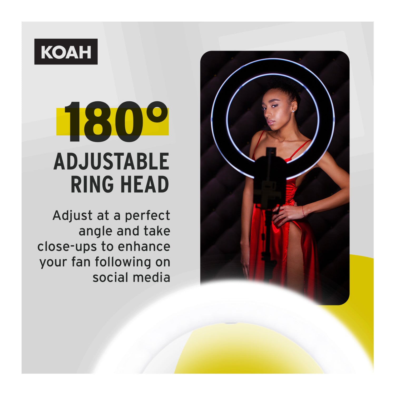 If you're a creative who needs continuous lighting, you can do little better than the Koah SOL SPHERE 19-inch 55W Dimmable LED Ring Light Kit for YouTube, Selfies, and Content Creation. This kit is ideal for photographers and videographers looking for powerful constant lighting with precise output. Our ring light kit conveniently comes with a carrying bag, a smartphone holder, and a professional air cushion stand.