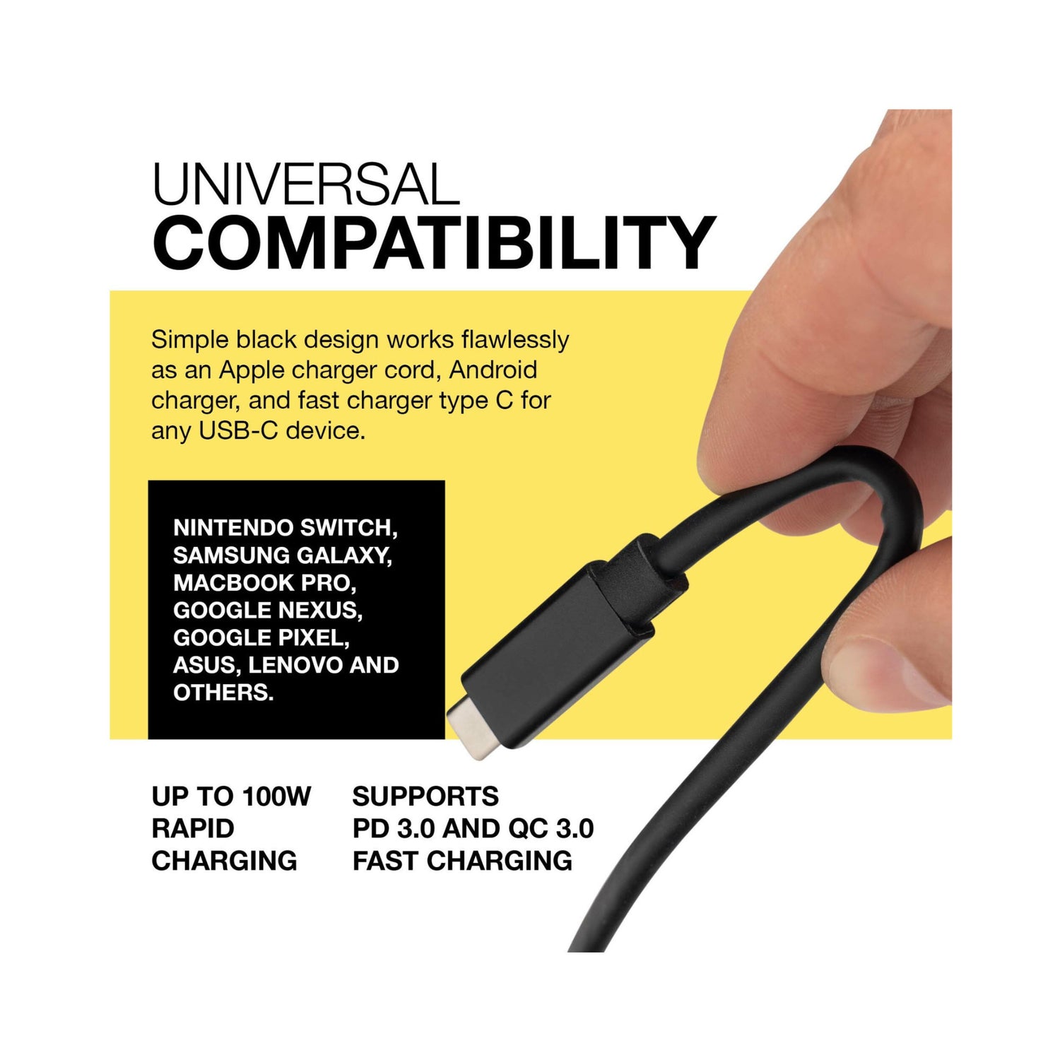 With a 40 Gbps data transfer rate you can sync your music, movies, shows and other files in just seconds. Transfer whole movies, TV series, and music libraries. Elegant and simple black design goes great with your favorite gadgets or on your desktop. Easily charge your MacBook, ChromeBook, Pixel, or other USB-C devices via any phone charger, portable charger, or multi-port USB charger.