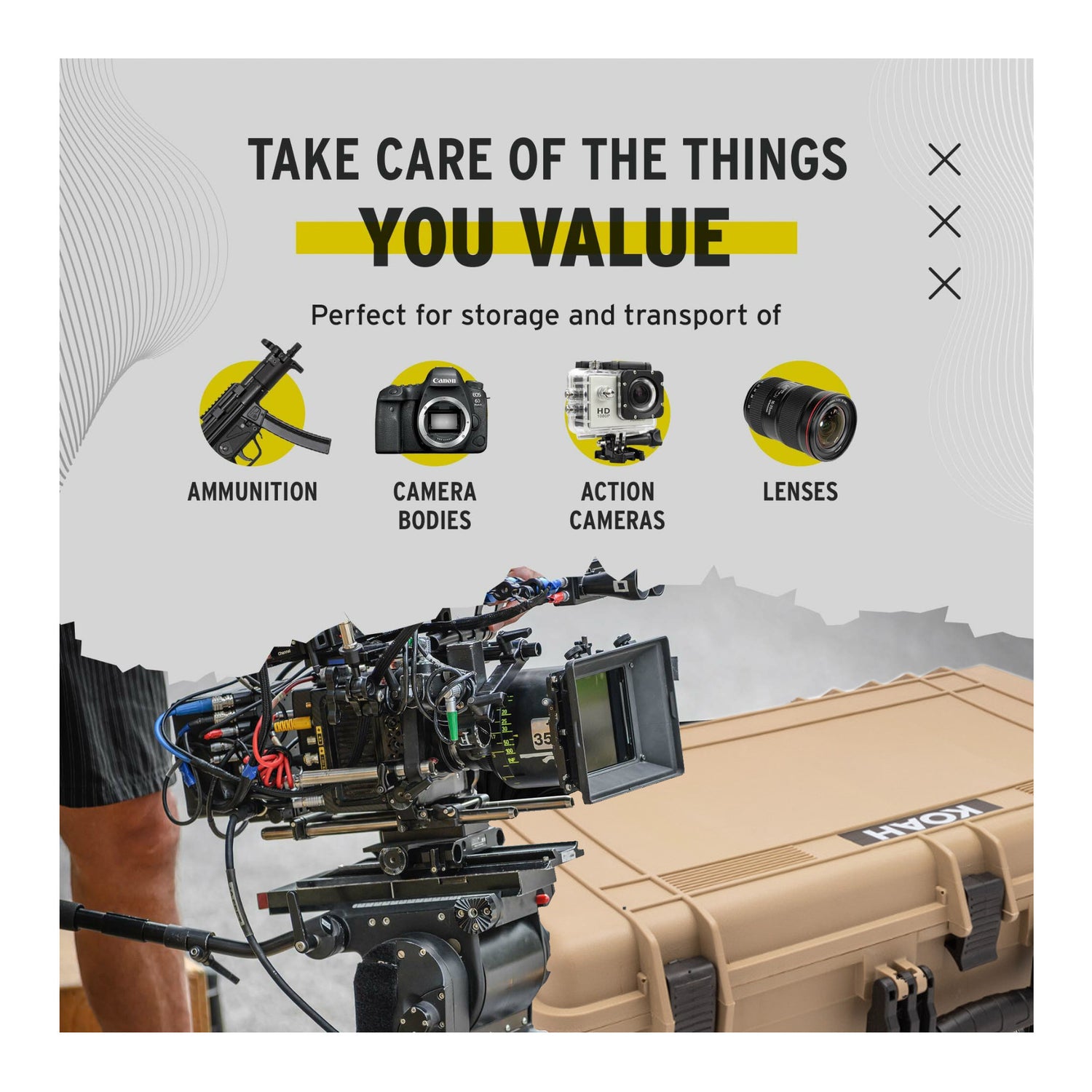 Koah Weatherproof Hard Case with Customizable Foam (28 x 17 x 7 Inch) - Tan