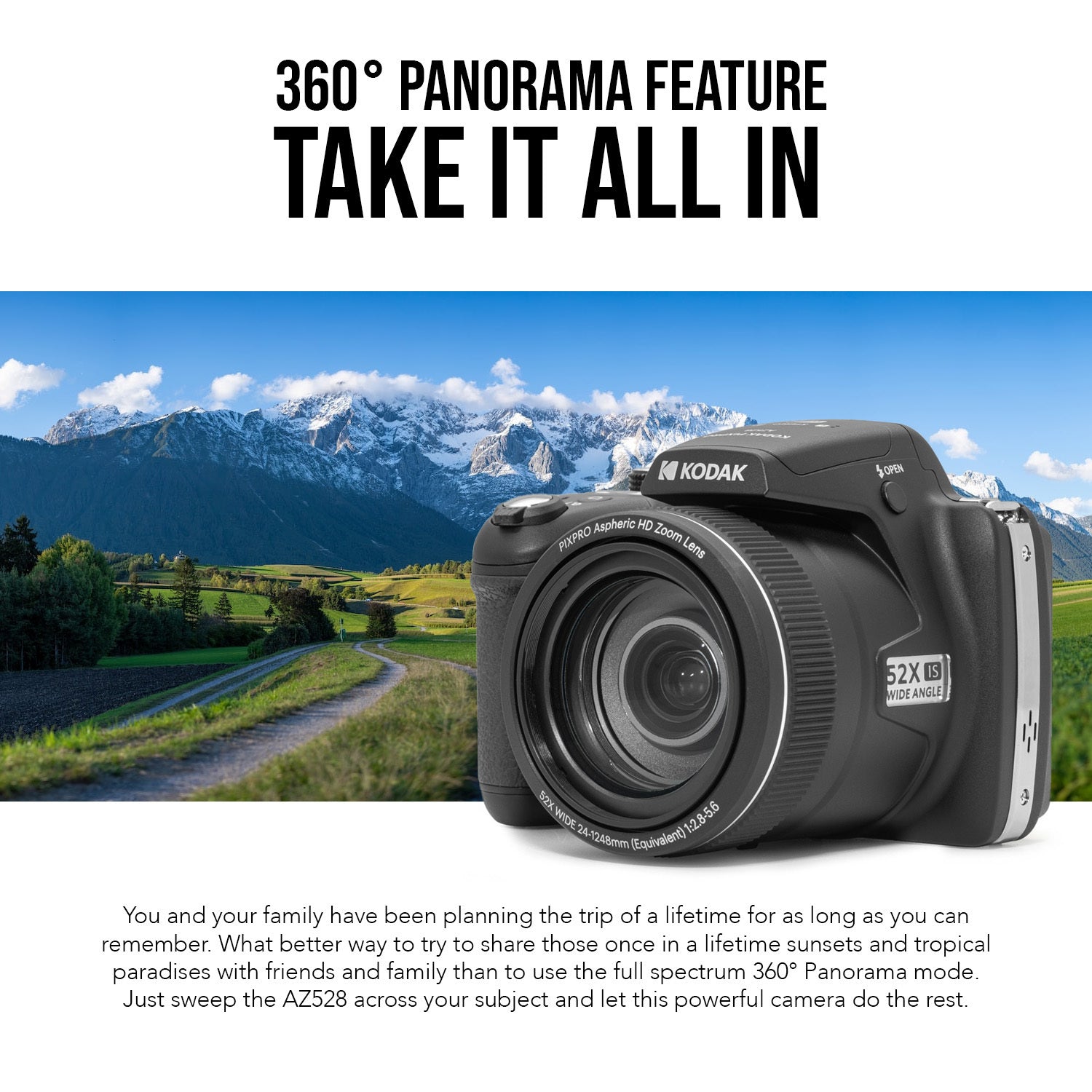 The Kodak PIXPRO AZ528 16MP Astro Zoom Digital Camera with 52x Zoom and 3-Inch LCD Display has a 24mm wide-angle for optimal picture clarity. Beauty is in the eye of the beholder with the Kodak PIXPRO AZ528 Astro zoom camera. Now, better than ever, all the power and performance you could wish for is harnessed in this cutting-edge, mega zoom bridge camera. Explore the power and freedom the AZ528 affords you firsthand.