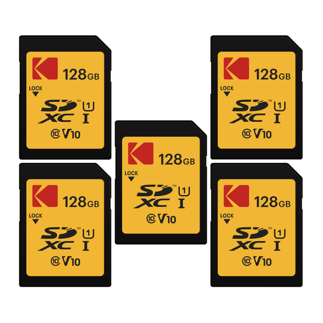 Kodak 128GB SD Class 10 UHS-I U1 V10 Full HD Memory Card with Up to 25MB/s Speed (5-pack)