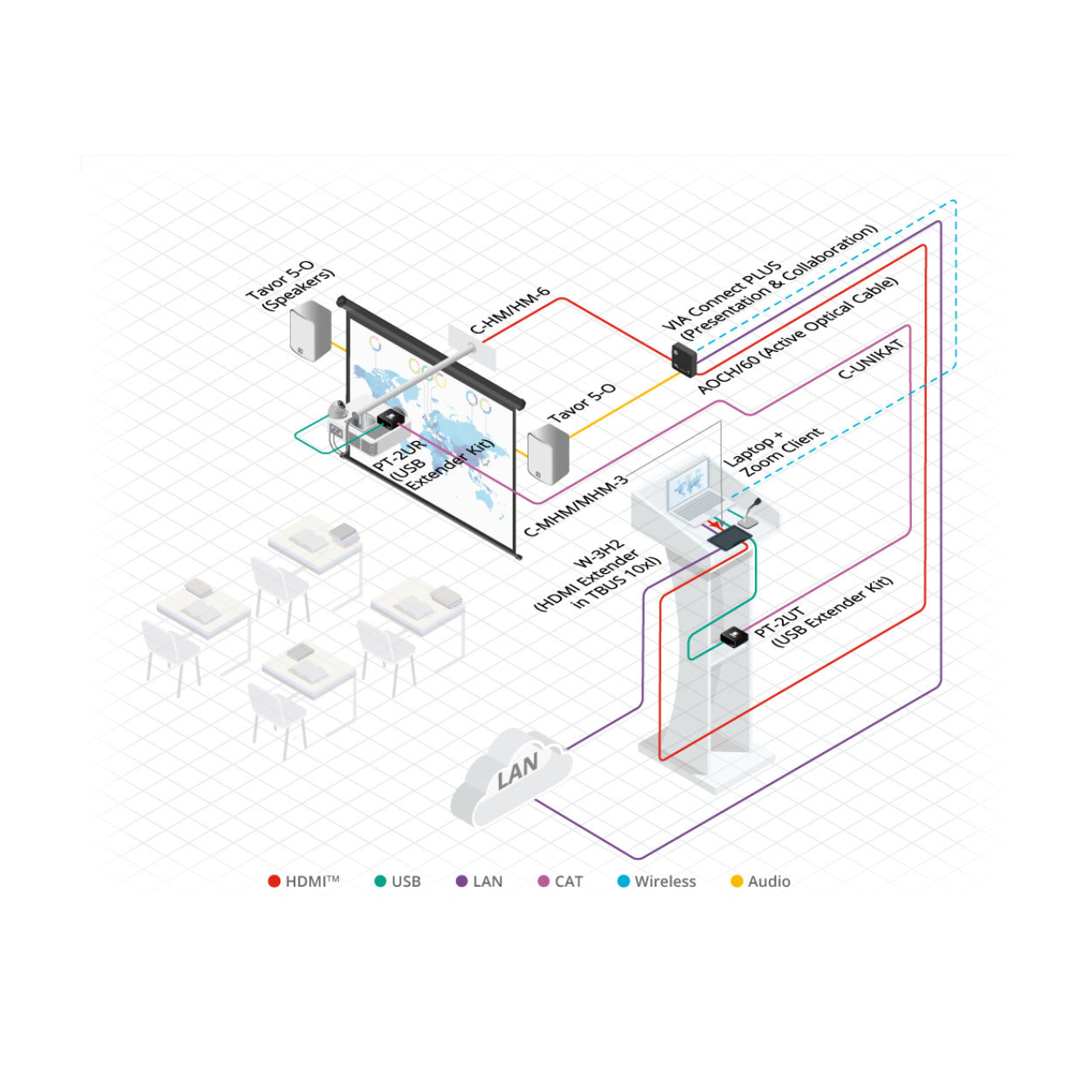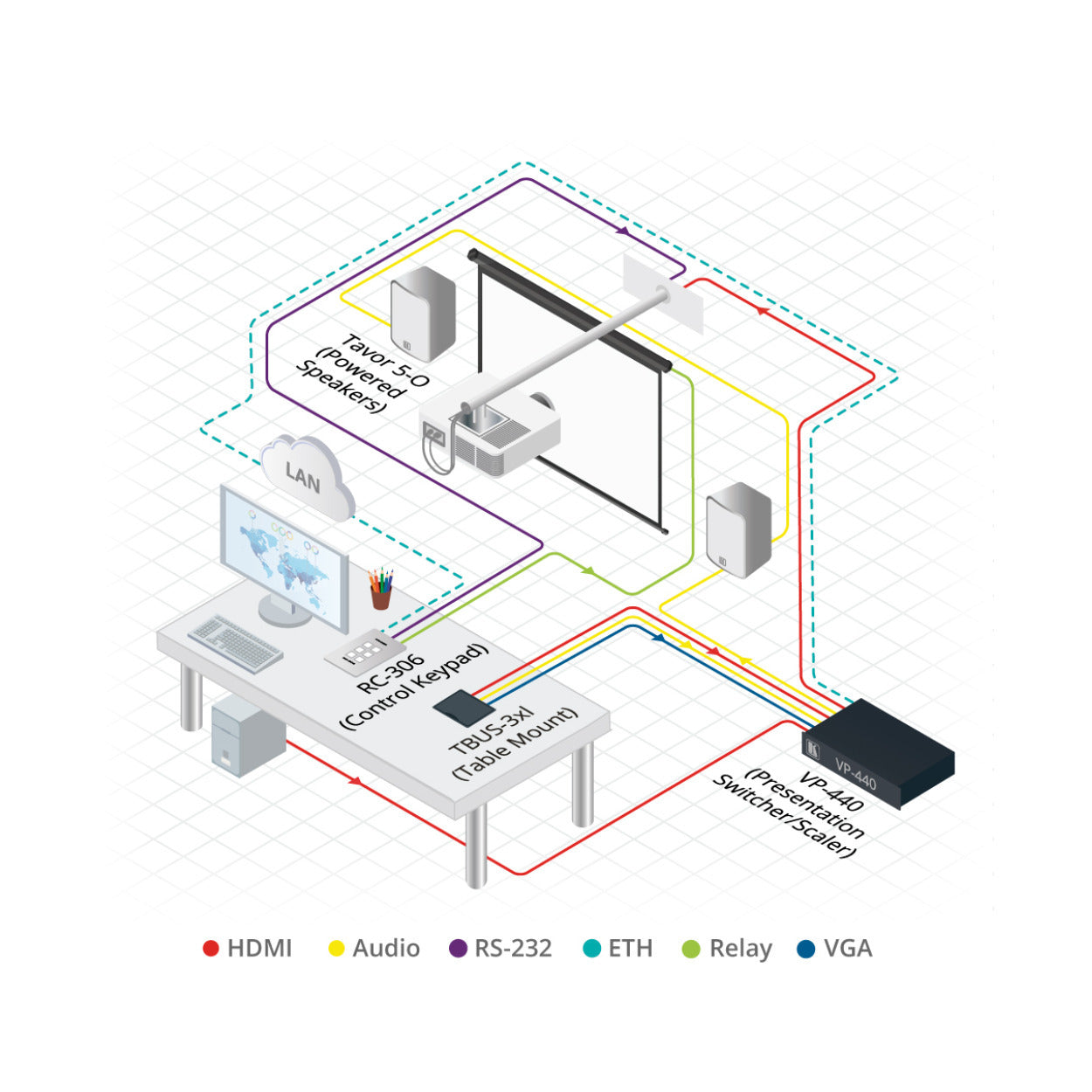 The Tavor 5−O is a pair of 5.25−inch powered two−way speakers designed for indoor wall mounting. The active speaker accepts a line−level stereo input and amplifies it using a built−in amplifier and outputs a speaker signal to the passive speaker.