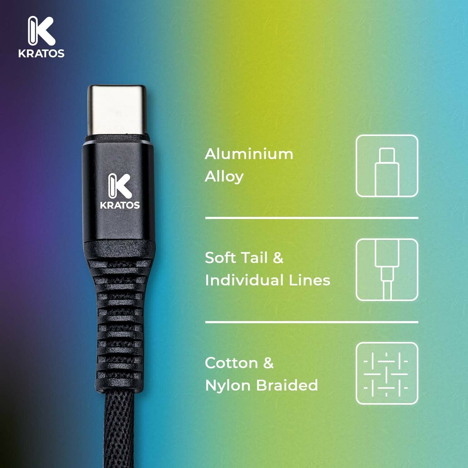 Kratos Power 6-Feet Long Tail Braided Aluminum Alloy USB-C to USB-A Cable (Black)