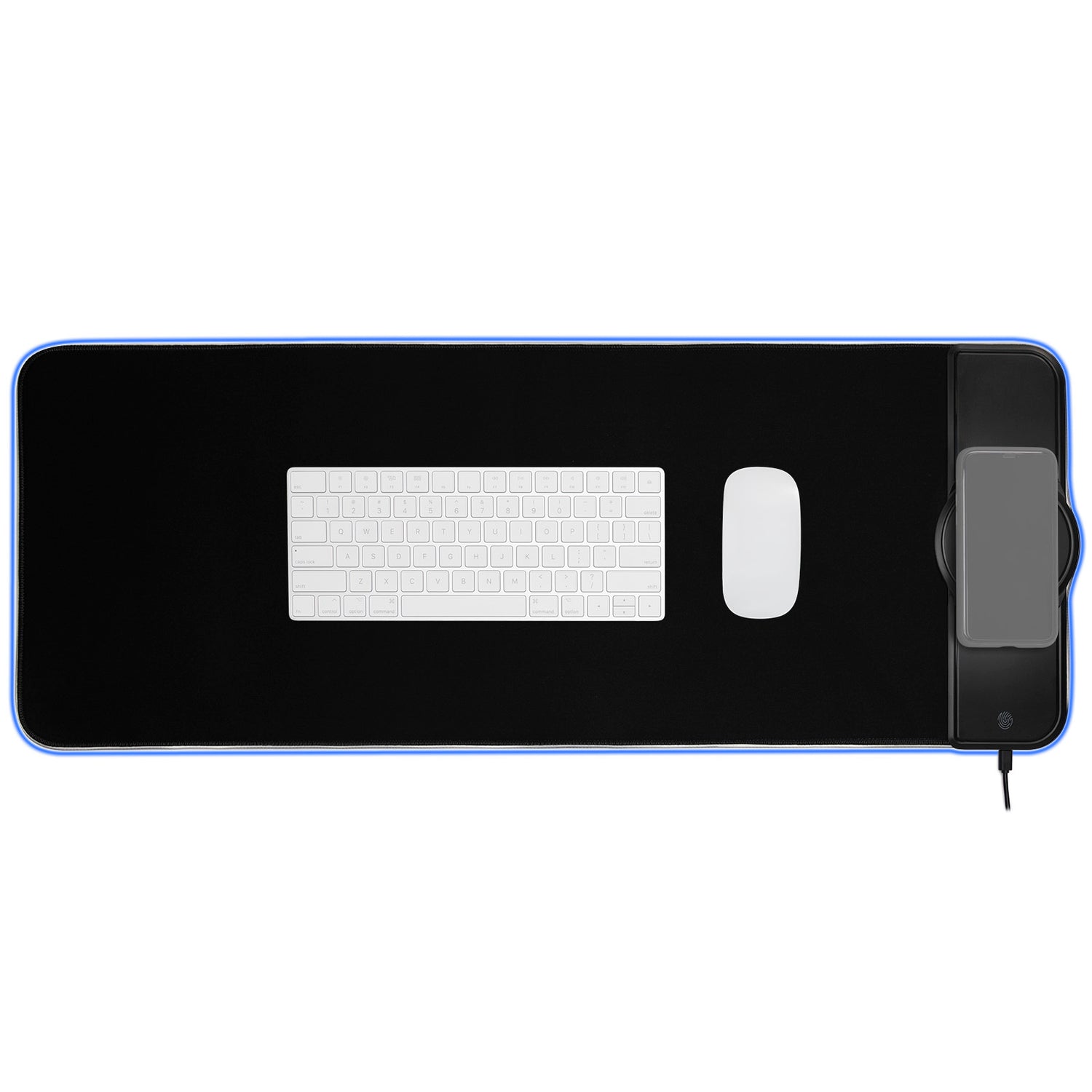 Experience RGB lighting customization with Kratos Power RGB Gaming Mouse Pad. Choose from 10 RGB lighting modes, including 7 static lighting single color modes (red, green, blue, purple, cyan, yellow, and white) and 3 dynamic lighting modes (breathing mode, magic flash, and magic slow). Memory stores the last set lighting mode for the next use. This large and spacious mouse pad has a size of 31.5 x 11.8 inches to easily fit your keyboard and mouse and leave extra movement space for high-speed gaming. 0.2 inches thick, it easily supports the wrist during long gaming sessions for your wrist comfort. Its surface is made of durable micro-textured cloth to provide a fine balance of friction and ultra-smooth glide to your mouse for greater speed and control. This extended mouse pad features a soft, non-slip design to ensure superior stability for a high maneuver accuracy during intense gaming sessions. Its water-resistant surface effectively prevents accidental damage from liquid spills. With an integrated 15W wireless charger, you can easily fast-charge your devices while gaming. Its built-in charger can be used with iOS, Android devices, and other Qi-enabled devices. Our gaming essential mouse pad comes with 1-year limited warranty for a risk-free purchase. Light up your gaming sessions with this RGB Gaming Mouse Pad with 15W Wireless Charging from Kratos Power Gaming. With 7 colors and 3 lighting modes, as well as convenient, fast charging, this gaming mouse pad will be a welcome addition to your gaming sessions.