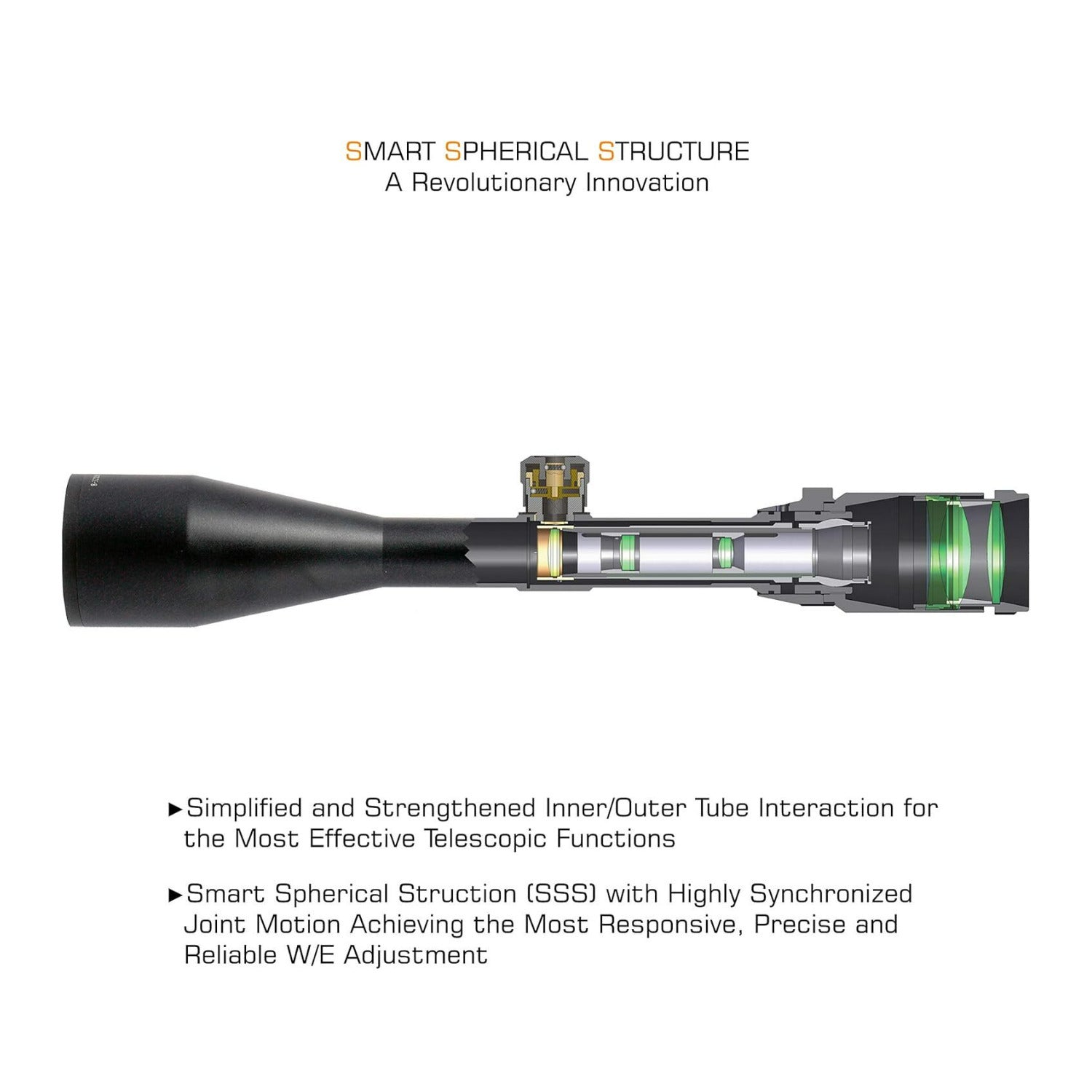 Simplified and strengthened inner and outer interaction for the most effective telescopic functions. Smart Spherical Structure (SSS) with highly synchronized joint motion achieves the most responsive, precise, and reliable W and E adjustment.
