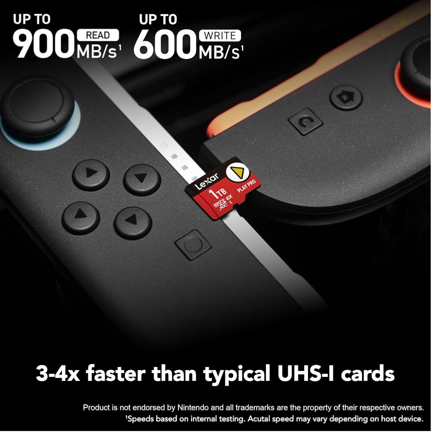 The Lexar PLAY PRO microSDXC Express Card gives gamers an epic performance power-up with up to 900MB/s read and 600MB/s write and capacity up to 1TB offers space for many AAA games.
