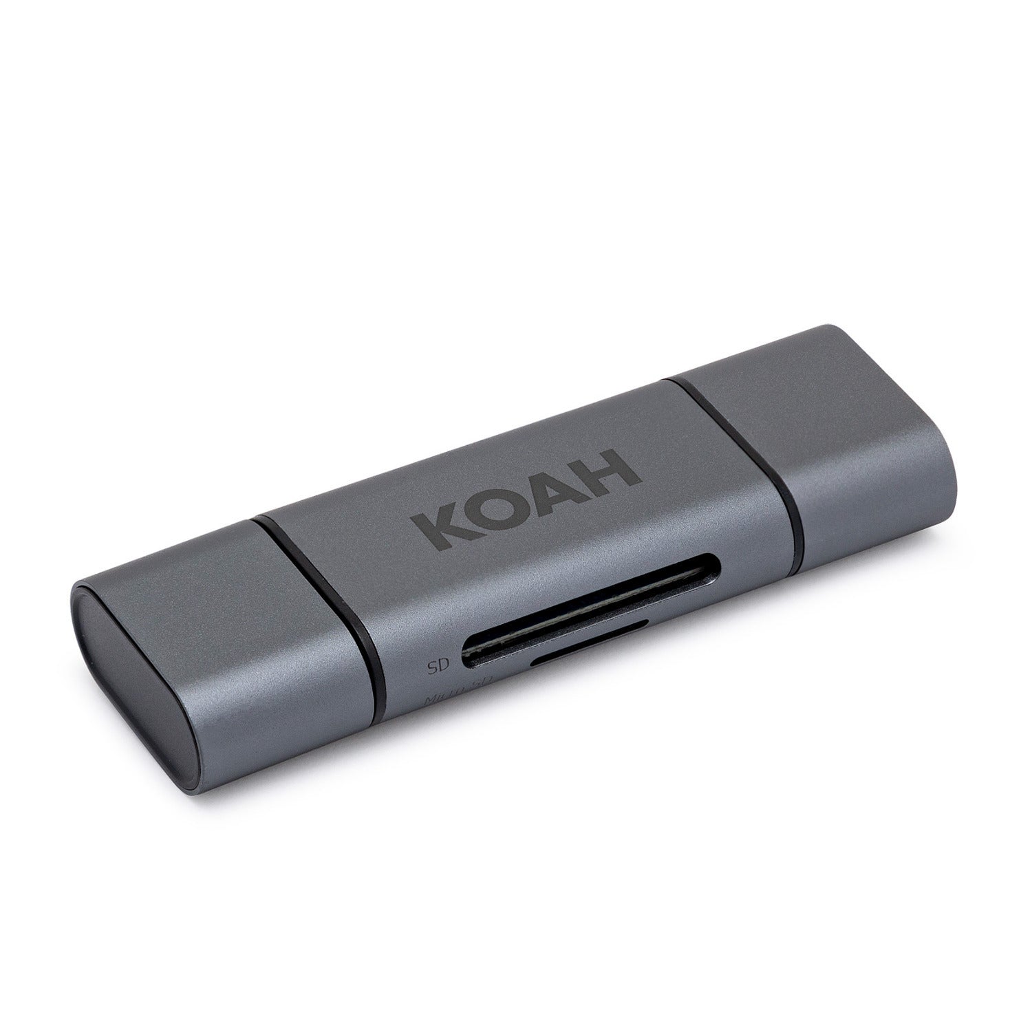 Read your memory cards easily on the go with the Koah PRO 2-in-1 Aluminum Shell On-The-Go Dual Slot SD Card Reader! Its aluminum shell is durable and gives it a sleek look.