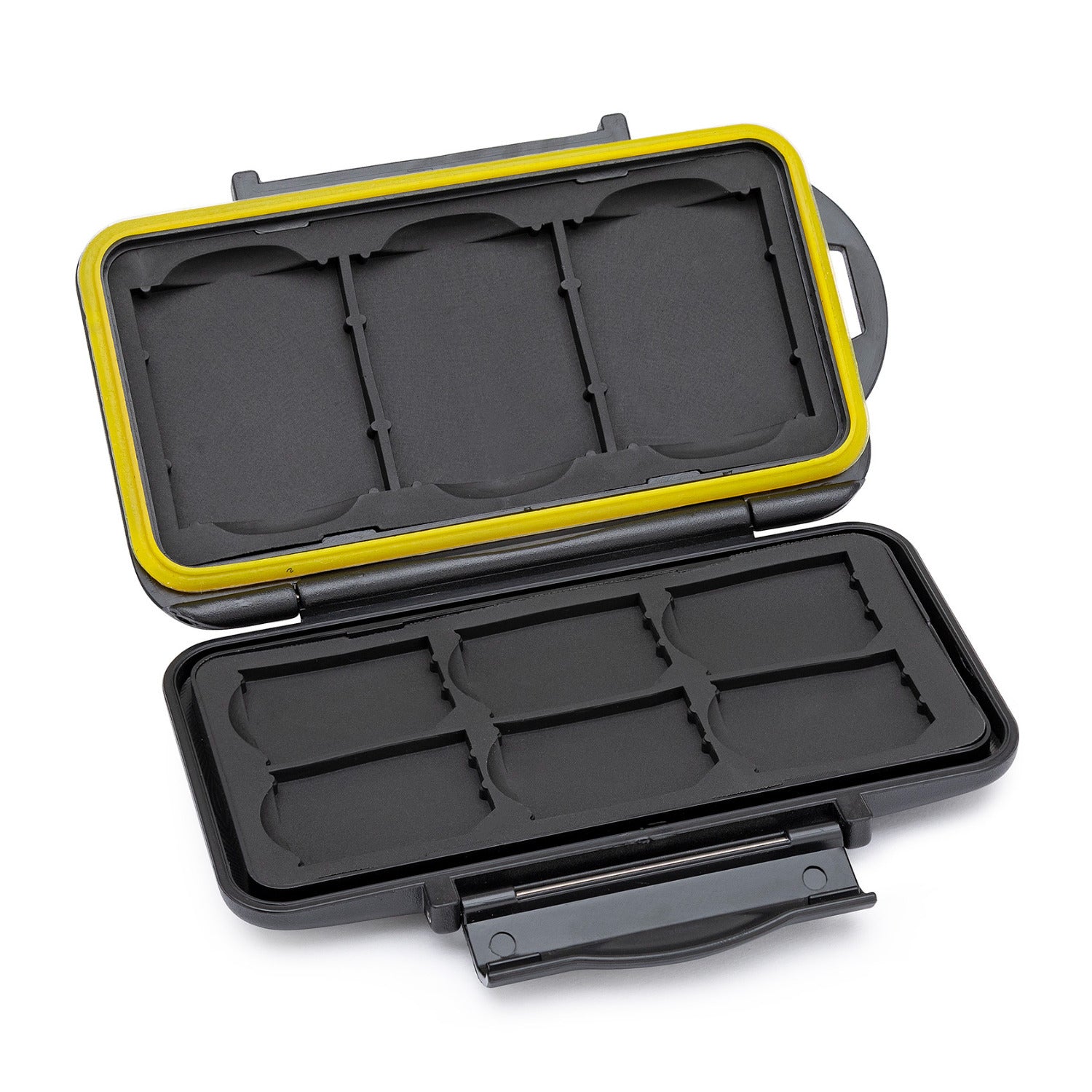 This case features a waterproof molded rubber interior lining that keeps your memory cards securely in place. It can hold up to 3 XQD/CFExpress and 6 SD cards in one case and features an ergonomic locking system.