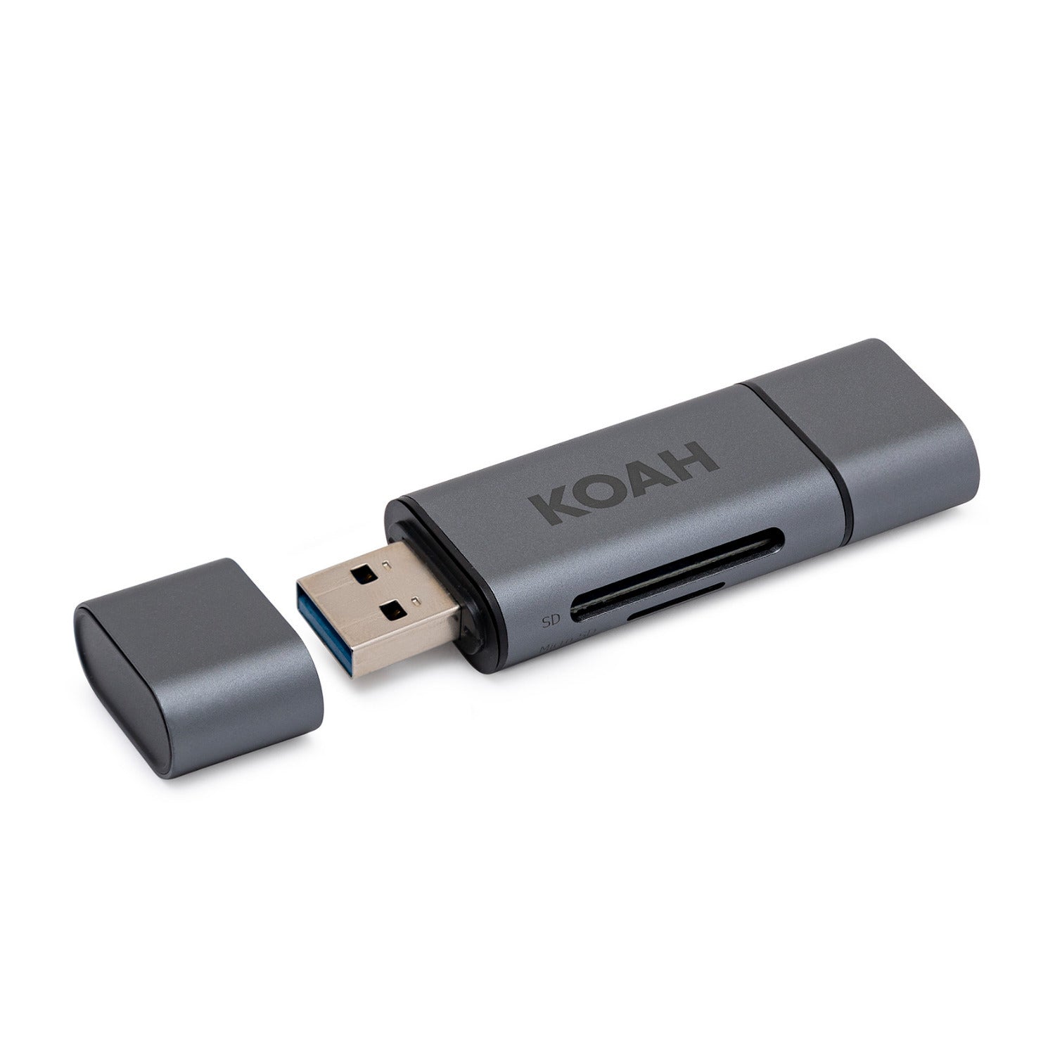 Read your memory cards easily on the go with the Koah PRO 2-in-1 Aluminum Shell On-The-Go Dual Slot SD Card Reader! Its aluminum shell is durable and gives it a sleek look.