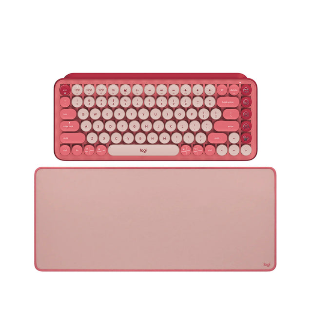 Logitech POP Keys Wireless Mechanical Keyboard with Emoji Keys Heartbreaker Rose w/Desk Mat