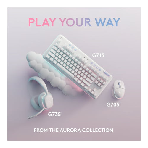 Come as you are. Make it your own. Customize a look all your own with ear pads and mic booms available in Pink Dawn and Green Flash. When it’s time to take your play to go, pack G735 and G705 Wireless Gaming Mouse into the beautiful Carrying Case and organize your wires with a cable management charm in matching Aurora Collection aesthetic.