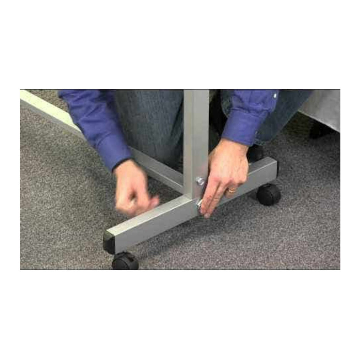 Built for brainstorming, teaching, or organizing ideas and information, the Luxor L270 24 x 36 Inch Magnetic Dry Erase Board doubles the writing space and delivers the durable mobility needed for dynamic workspaces. A slender-yet-sturdy 1-inch aluminum frame provides a professional appearance and rolling casters make it easy move around a room. To flip the board, simply loosen the side knobs and disengage the spring-loaded locking clip. While displaying charts, papers, or photos, use the magnetic surface as a bulletin board. They are economically priced without compromising quality. It has a space-saving vertical orientation. The painted steel surface resists ghosting and provides excellent erasability. The board has great mobility with four casters, two with locking brakes. The full-length marker and eraser tray provides ample room for board materials. Look no further for a premium and affordable mobile marker board.