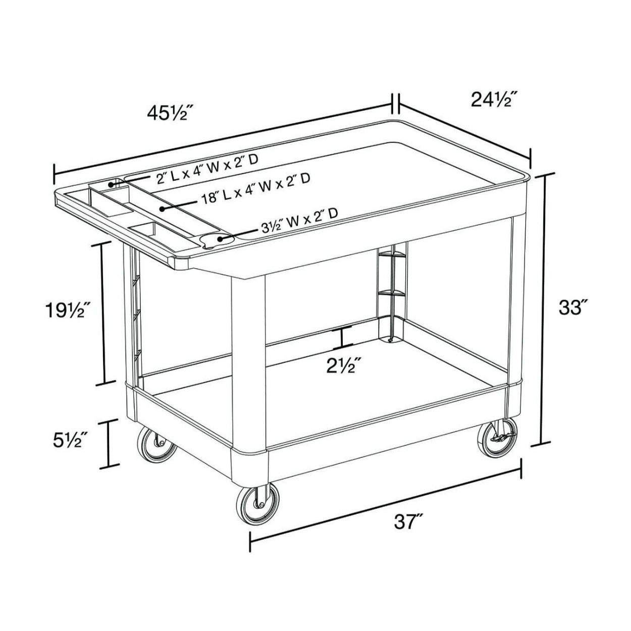 | Cart Dimensions (W x L x H) | 24.5 x 45.5 x 33 inch |