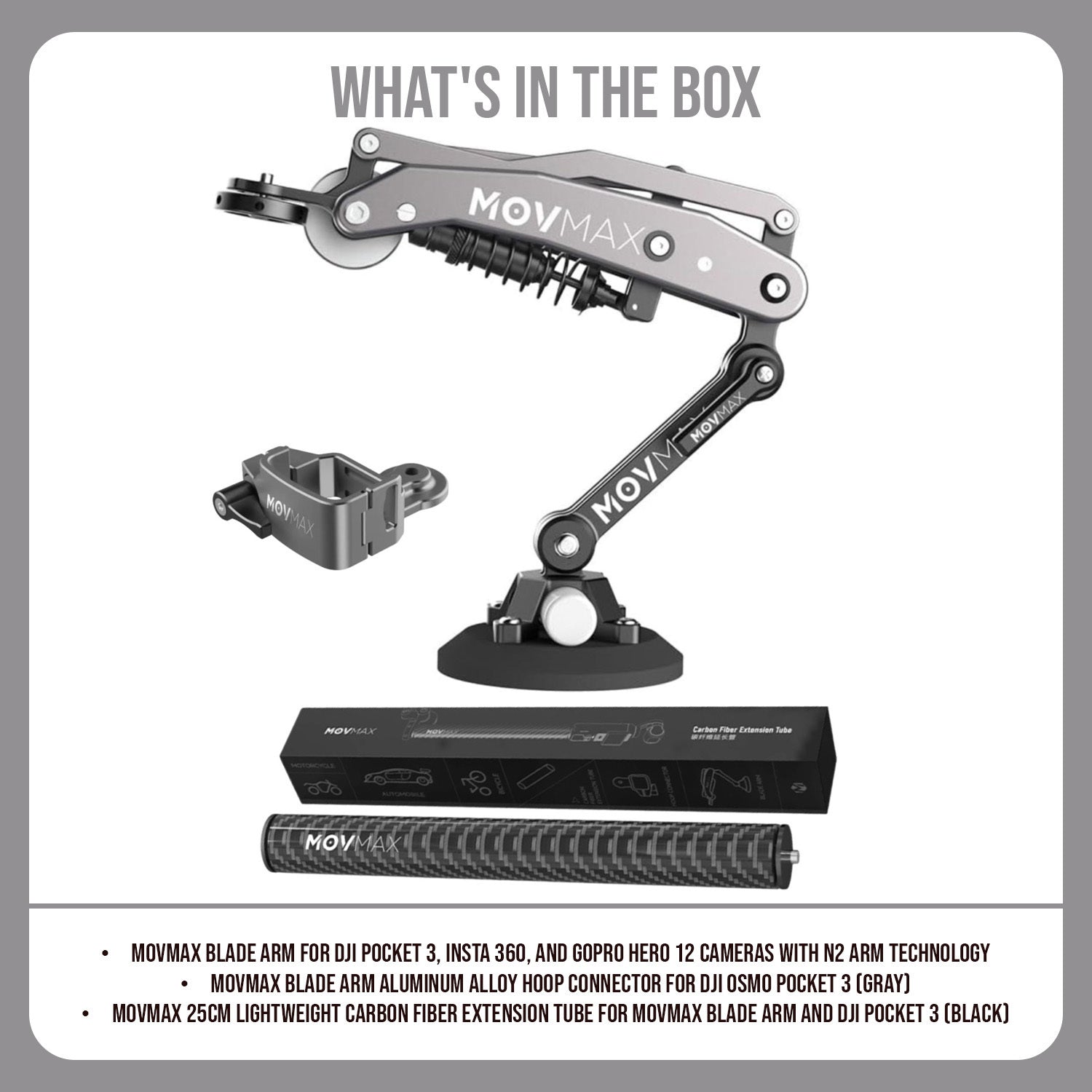 Movmax Blade Arm for DJI Pocket 3, Insta 360, and GoPro HERO 12 Cameras and Hoop Connector Bundle