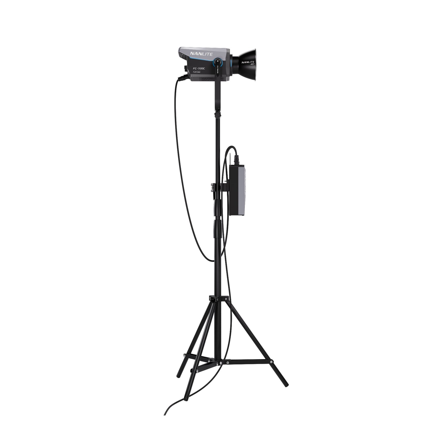 The Nanlite FC-720C RGBW LED Spotlight is a 750-watt point-source light that delivers bi-color and full-color output with a 2400K–12000K CCT range, ±150 green/magenta adjustment, up to 5040 lux at 5600K, accurate color performance (CRI 95, TLCI 94), 0.1 percent dimming, Bowens mount compatibility, multiple control options including app and DMX, built-in effects and gel presets, and includes essential accessories with an extendable warranty.