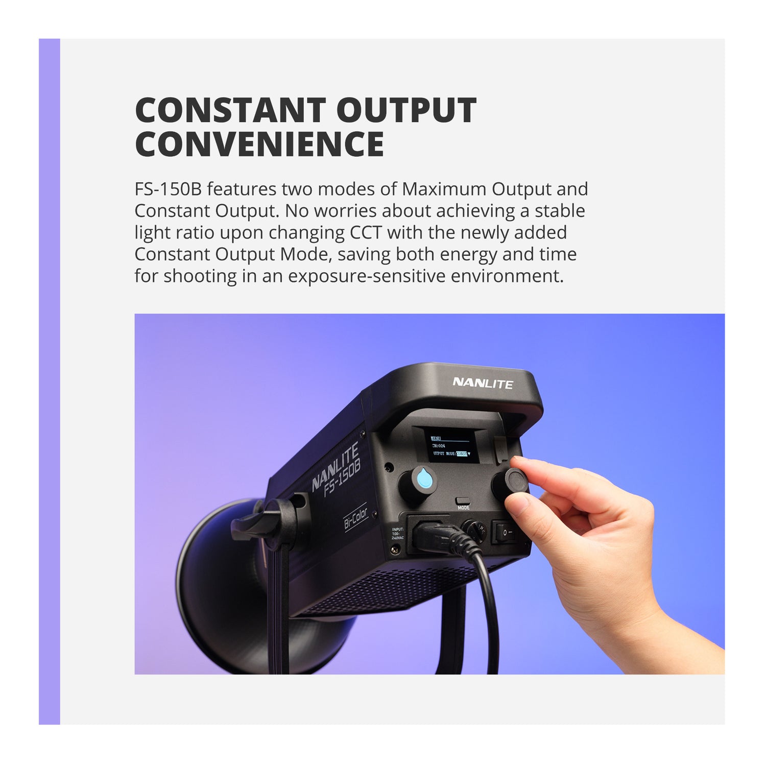The FS-150B offers a wide color temperature range, letting users match natural light, tungsten fixtures, and other lighting environments without gels. Fine-tuning warmth or coolness helps craft cinematic mood, handle mixed-light conditions, or maintain consistent tones across scenes.