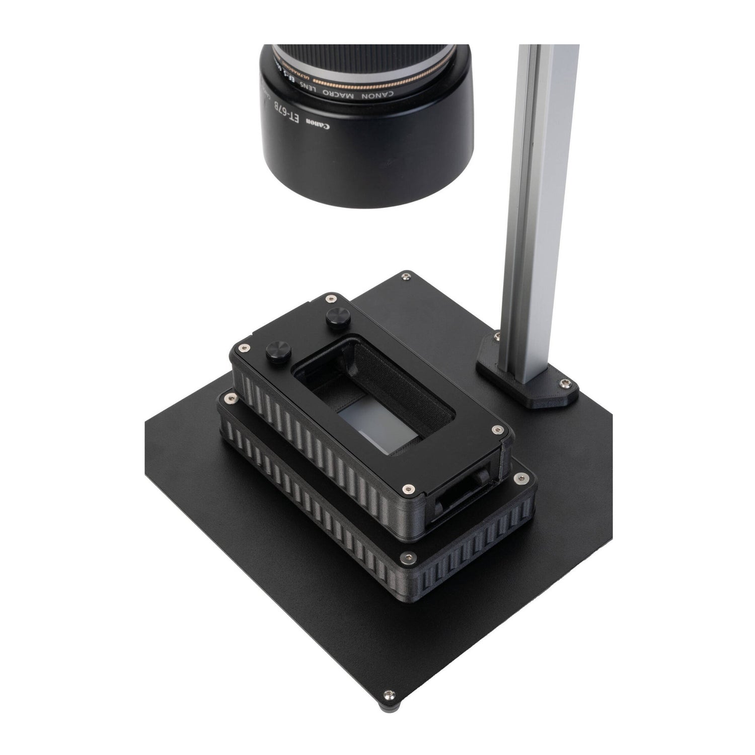 The Basic Riser MK2 is a stable copy stand for 35mm, 120, and 4 x 5 film. Its all-metal design and solid aluminum base provide a rigid scanning platform, ensuring precise alignment and consistent results for every frame.