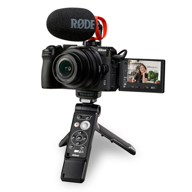 The Z 30 Creator's Kit pairs the compact, lightweight Z 30 creator-ready camera with the NIKKOR Z DX 16-50mm f/3.5-6.3 VR lens which offers a versatile zoom range, VR image stabilization built-into the lens and quiet operation, making it ideal for video. Also included is the Nikon ML-L7 Bluetooth® Remote Control, RØDE VideoMicro™ Microphone II and SmallRig Tripod Grip that can hold the ML-L7.