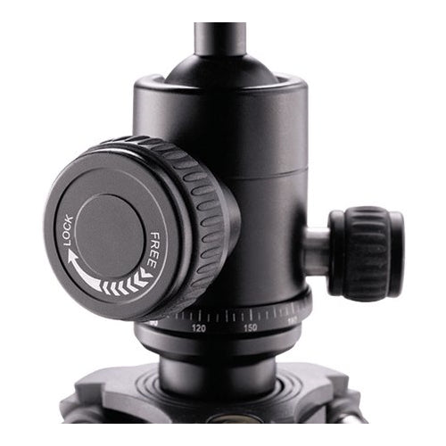 The fully adjustable 360-degree rotating aluminum ball head features a quick-release plate that locks the optic into position as needed. Features marked rotation indicator graduations. It features a quick-release attachment plate.