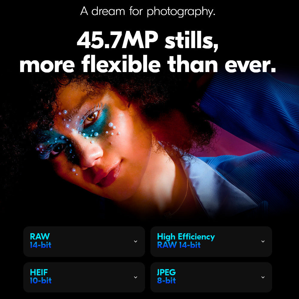A dream for photography. 45.7MP stills, more flexible than ever.