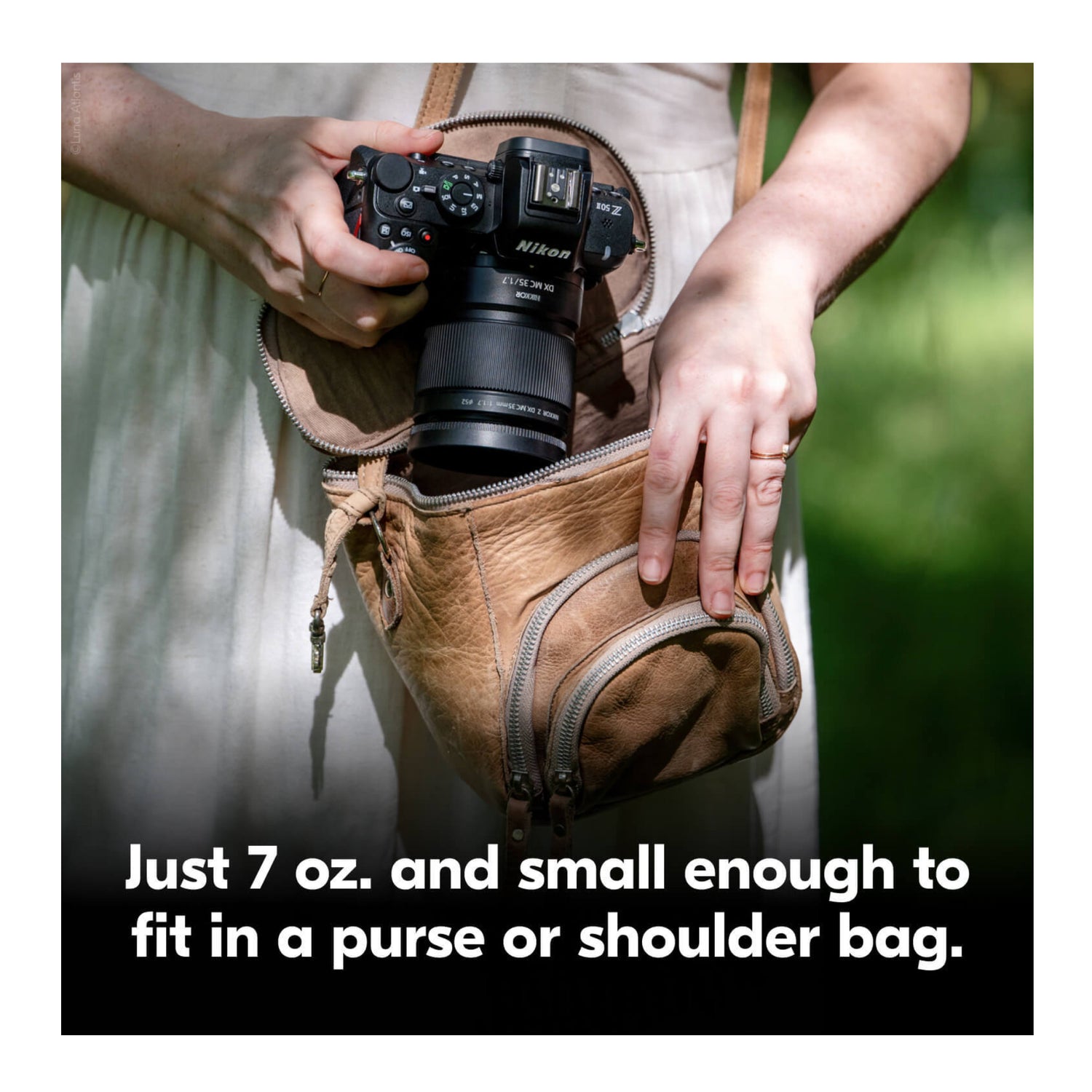 Weighing only 7 oz., this compact lens easily fits into a purse or camera bag, making it perfect for travel and on-the-go shooting.