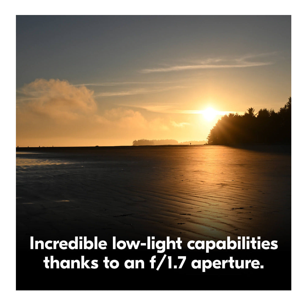 Wide f/1.7 aperture creates soft, dreamy backgrounds that make your subject stand out, ideal for portraits and close-ups.