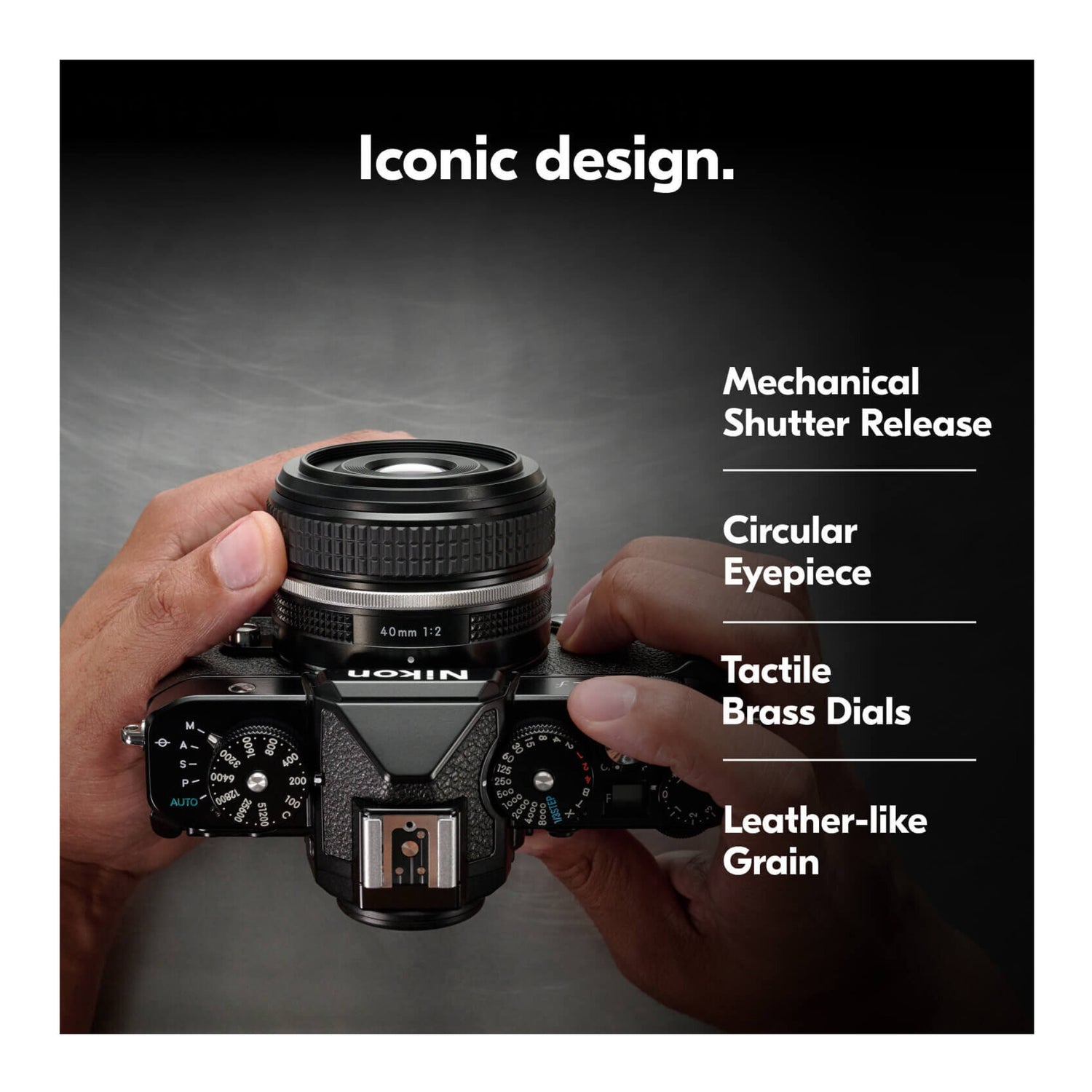 The Nikon Zf Mirrorless Camera is the most powerful entry yet in Nikon's digital throwback line. Inspired by the classic FM2, it combines vintage SLR aesthetics with modern Z-series technology to deliver timeless imagery. Its precision-carved aluminum body features engraved dials for shutter speed, ISO, and exposure compensation, while the mechanical shutter offers a satisfying, authoritative click. A dedicated black-and-white mode with two monochrome recipes is available at your fingertips.