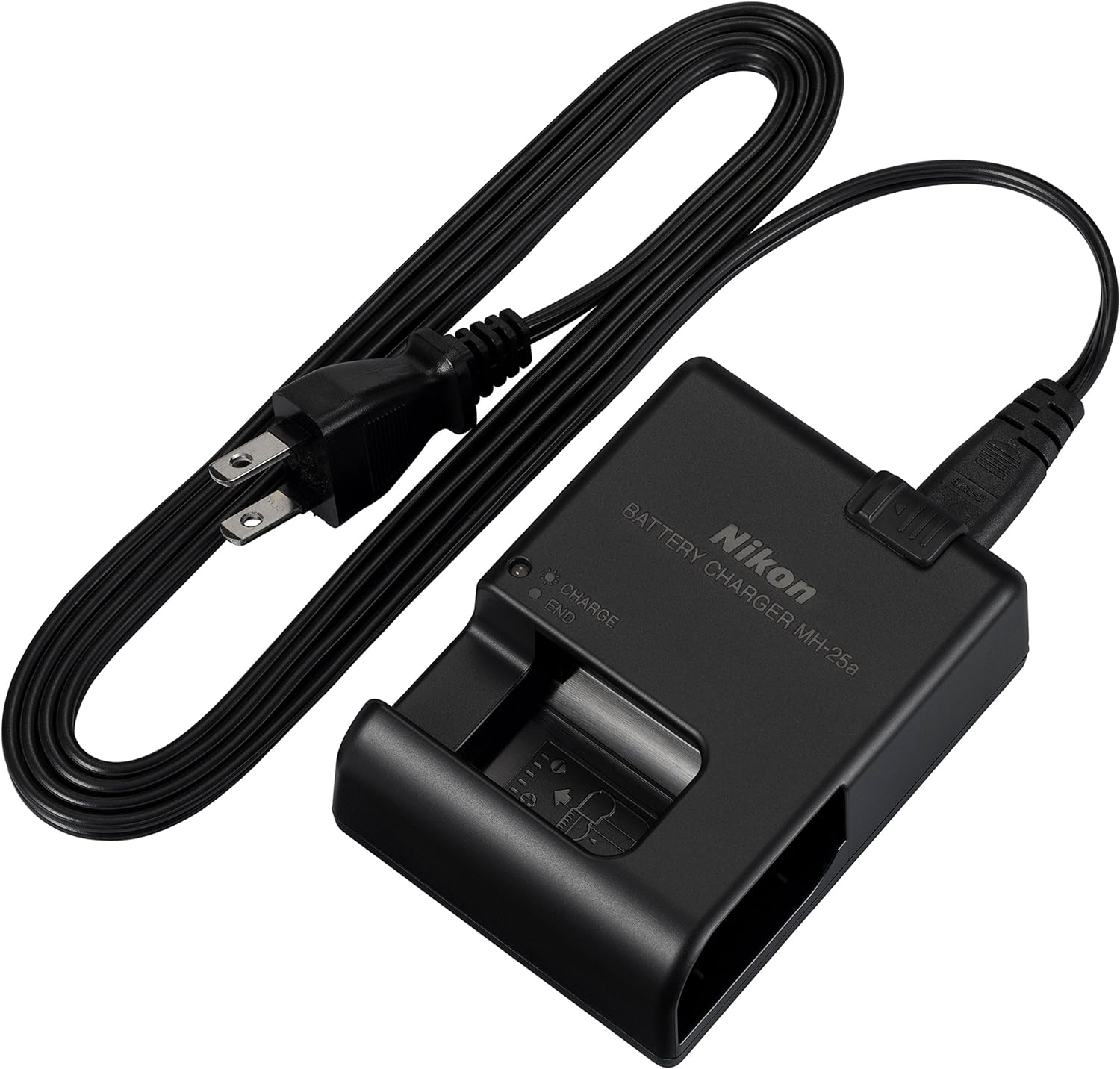 The Nikon MH-25A Battery Charger is a wall charger for the EN-EL 15 Li-ion battery.