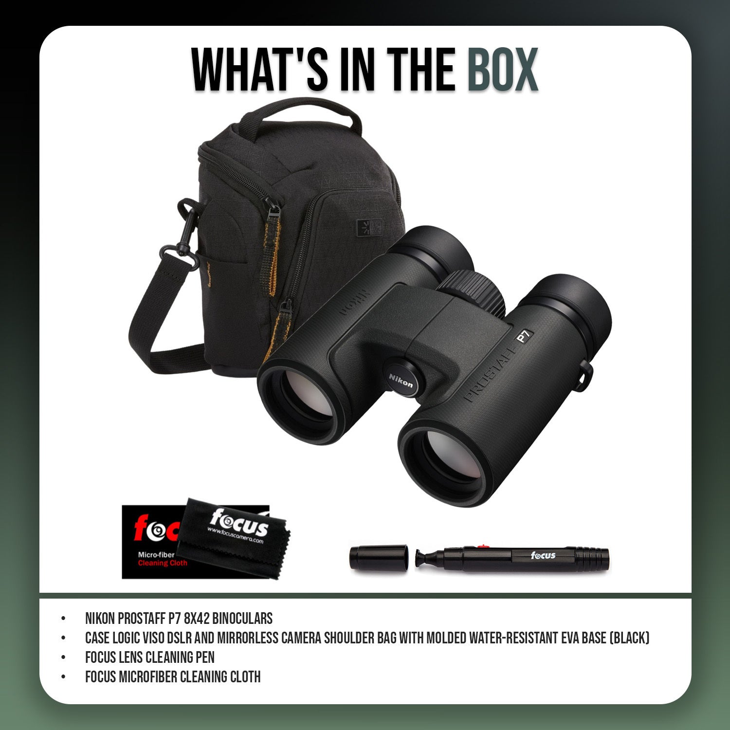 Nikon Prostaff P7 8X42 Binoculars and DSLR and Mirrorless Camera Shoulder Bag (Black) Bundle