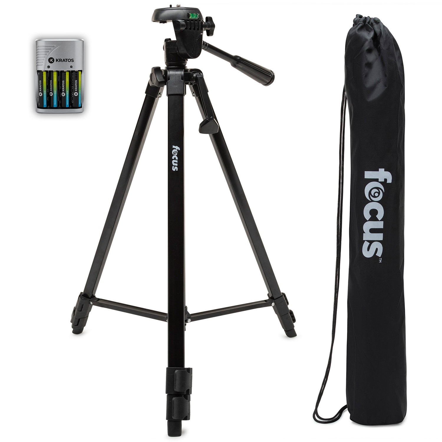 Focus Camera 59-inch Photo/Video Tripod, Rapid Charger with 4 AAA NIMH Rechargeable Batteries, Microfiber Cleaning Cloth Kit