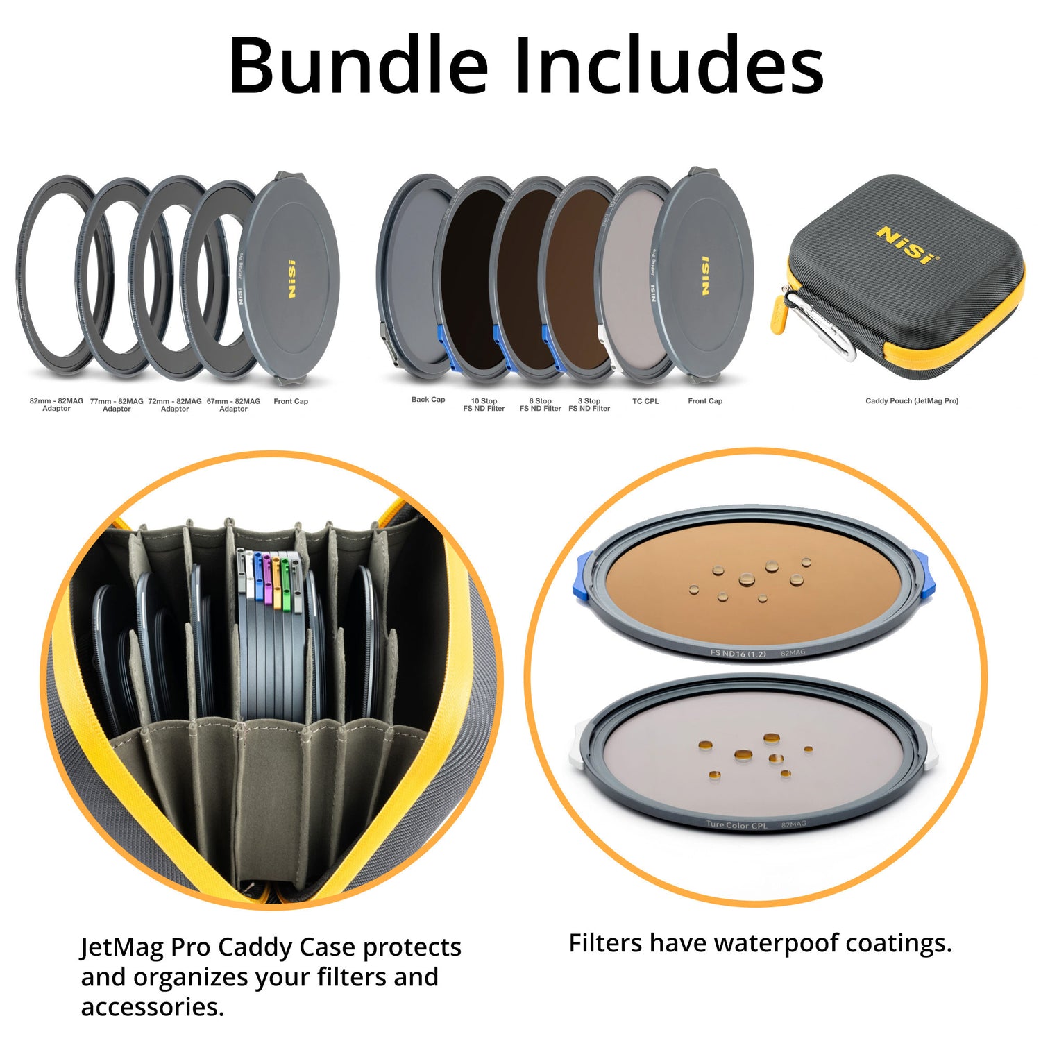 The kit is equipped with four adaptor rings (67mm-82MAG, 72mm-82MAG, 77mm-82MAG, and 82mm-82MAG), making it compatible with a wide range of lens sizes. For added protection, the kit includes two front caps, one back cap, and a JetMag Pro Caddy Case for safe storage and organization of your filters and accessories. Whether you’re shooting dramatic sunsets or long exposure scenes, the NiSi JetMag Pro Landscape ND Kit offers everything you need for professional-grade results.