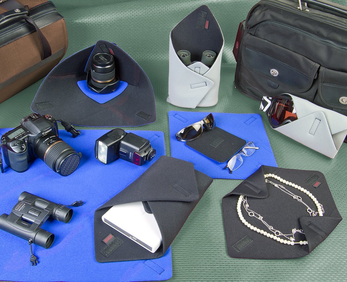 Soft Wraps provide extra protection for lenses, cameras, binoculars, light meters, small tripods, monopods, tools, outdoor gear and other accessories. They offer an extra 5-inch square pad within the wrap which can be moved around to provide extra protection where needed. This unique feature is only available from OP/TECH USA. As Soft Wraps are available in a choice of several colors, equipment can be easily identified by using different colored Soft Wraps for each item.