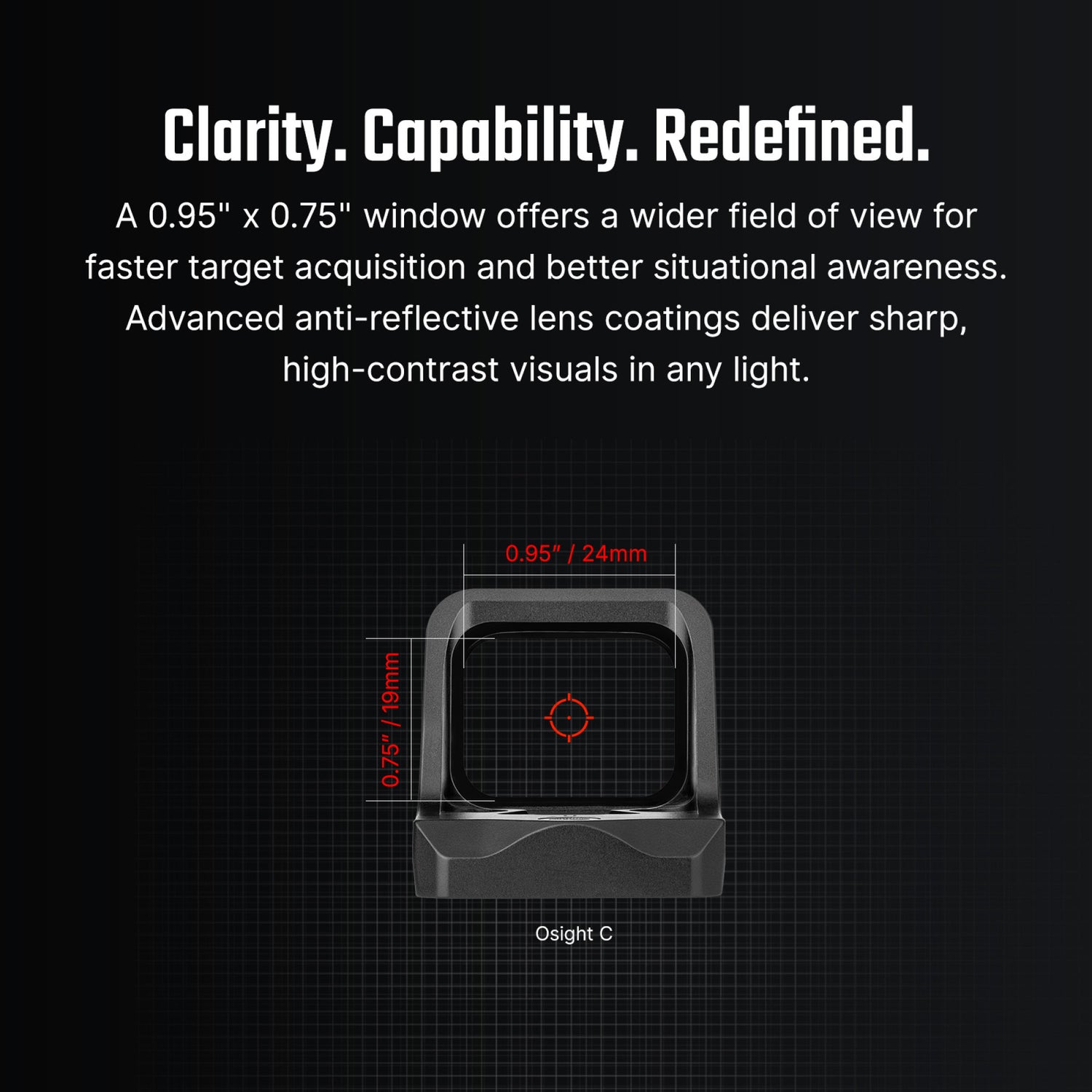 Engineered with advanced anti-reflective lens coatings, this sight maximizes light transmission for unmatched clarity, allowing you to quickly lock onto targets with pinpoint precision. The 0.95 x 0.75-inch window delivers a greater sight picture, ensuring faster target acquisition and quicker follow-up shots.