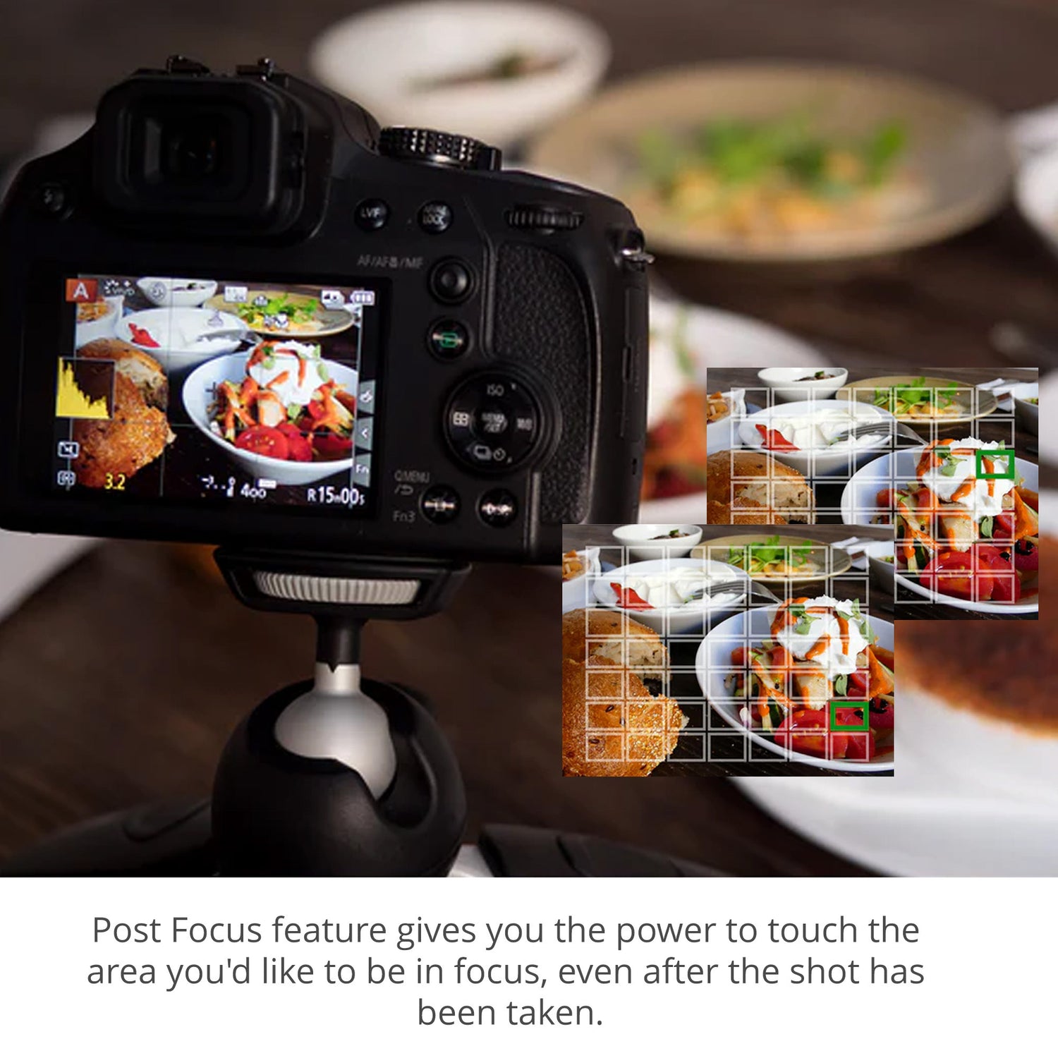 With a wide range of features in a light, point-and-shoot camera body, the Panasonic LUMIX FZ80D Camera enables you to capture incredibly vivid, clear moments near and far. The 20-1200mm zoom lens (35mm camera equivalent) gives you the ability to shoot landscapes and panoramas with a high level of detail. The FZ80D handles up-close shots as well as it handles landscapes, with macro shooting at a minimum focusing distance of 1cm for detailed close-up shots of food, flowers, insects, and more. The 2,360K-dot View Finder is designed to give you a clear, glare-resistant view at all times, even in bright sunlight. Enjoy clear, precise videos and photos, even action shots, with 4K Video Mode, recording up to 4x resolution of Full HD. The 4K Photo feature lets you extract the perfect photo out of 4K video and save it as an 8-megapixel equivalent still image. The Post-Focus feature gives you the power to touch the area you'd like to focus on, even after the shot has been taken. You will never worry about blur with POWER O.I.S. (Optical Image Stabilizer) to minimize handshake. The 3-inch rear monitor offers a high resolution of approximately 1,840k-dot and features higher visibility even for sunny outdoor shooting. Touch control immediately lets you set focus to the subject by just touching it on the screen and you can even release the shutter. The Zoom Compose Assist function lets you quickly zoom out with a single press of a button when you've lost your subject while telephoto shooting. This allows you to instantly reconfirm your composition. The camera's battery can be recharged via USB Type-C according to your convenience.