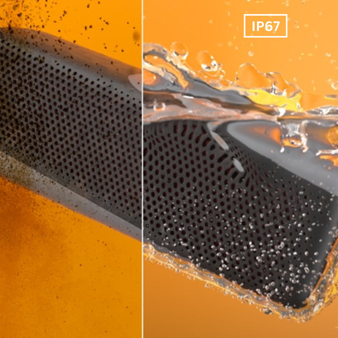 This speaker can go anywhere, from the trail to the beach to the pool, thanks to its IP67 classification. The lanyard is removable, and the Bluetooth range is up to 20 meters, so you won't miss a beat. Even if you're far away from the speaker with your phone.
