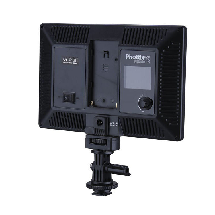The Phottix Nuada S Softlight LED Panel is portable and discreet lighting solution ideal for photographers and videographers on the go. This 7.5 x 5-inch LED panel renders color beautifully with an excellent CRI rating of 95+ and thanks to a built in digital color temperature control from 3300K-5600K it can easily be blended with ambient light or strobe. For added convenience, the Phottix Nuada S runs on Sony-compatible NP series batteries, including the NP-F550, F750 and F960, which it can also charge via USB. Additionally, for mounting, this versatile LED panel offers a 1/4-inch mounting lug and detachable cold shoe adapter.