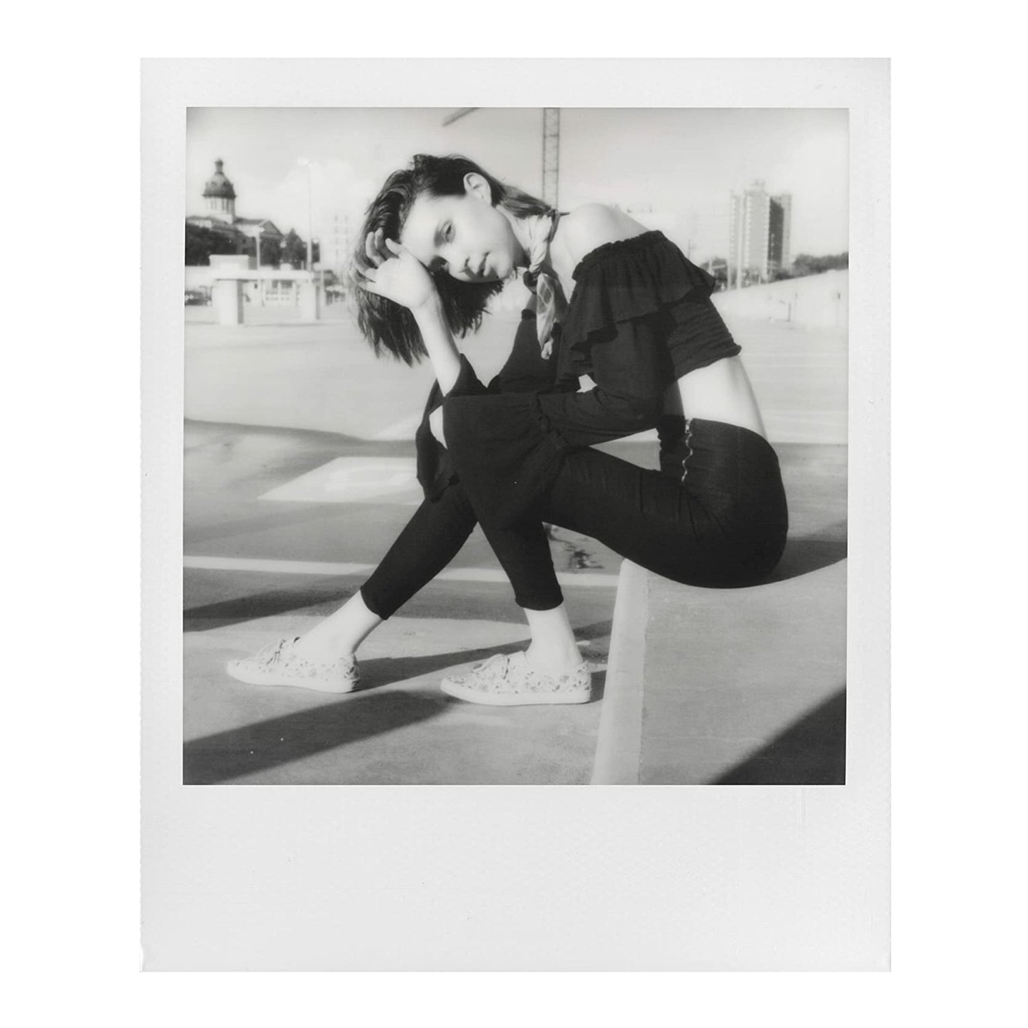 A film that’s made especially for Polaroid SX-70 cameras. Black and white SX-70 film has a lower film speed (ASA) to give you photos with a richer texture and finer grain. Just make sure you always shoot with lots of natural light. It comes with 8 photos in every pack.