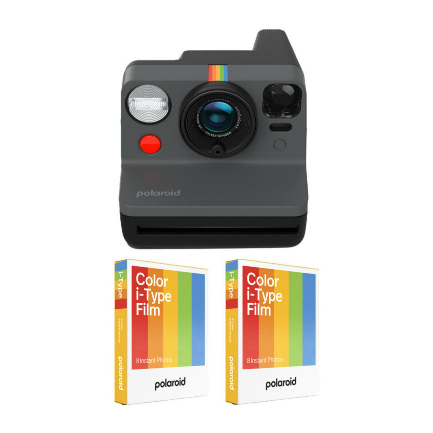 The Polaroid Now Generation 3 Instant Camera in Black with Color Film Bundle features the classic analog instant camera, optimized for sharper pictures in more lighting conditions. It features a better light meter position, an improved ranging sensor, an upgraded two-lens autofocus system, a built-in tripod mount, filter compatibility and even self-timer and double-exposure modes. All in a classic Polaroid look made with 40 percent recycled materials. It is rechargeable with USB-C and compatible with Polaroid i-Type and 600 Film to capture real life in iconic, full-sized Polaroid pictures. It includes a Polaroid Color i-Type Film Pack for 16 color instant photographs with white frames and a strap.
