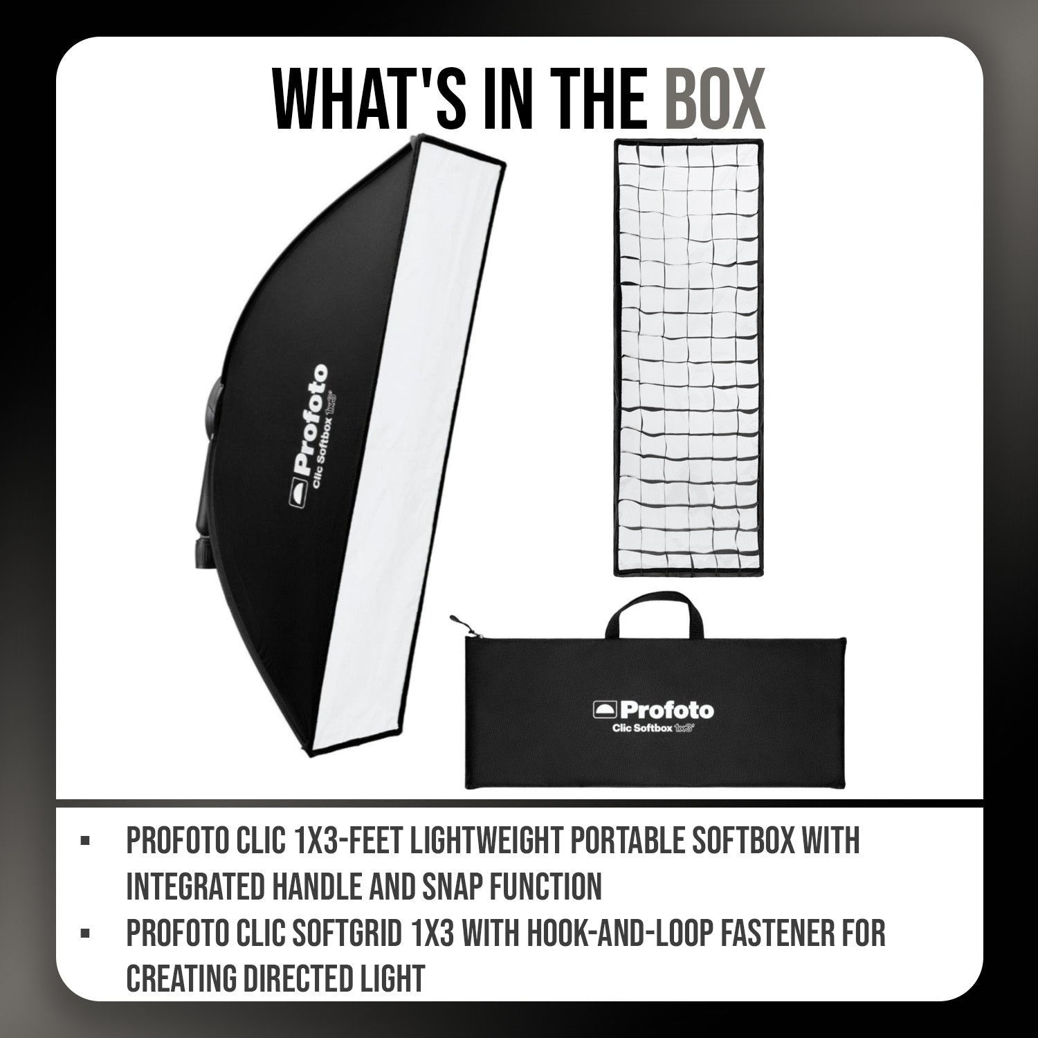 Profoto Clic 1x3-Feet Lightweight Portable Softbox with Integrated Handle and Clic Softgrid Bundle