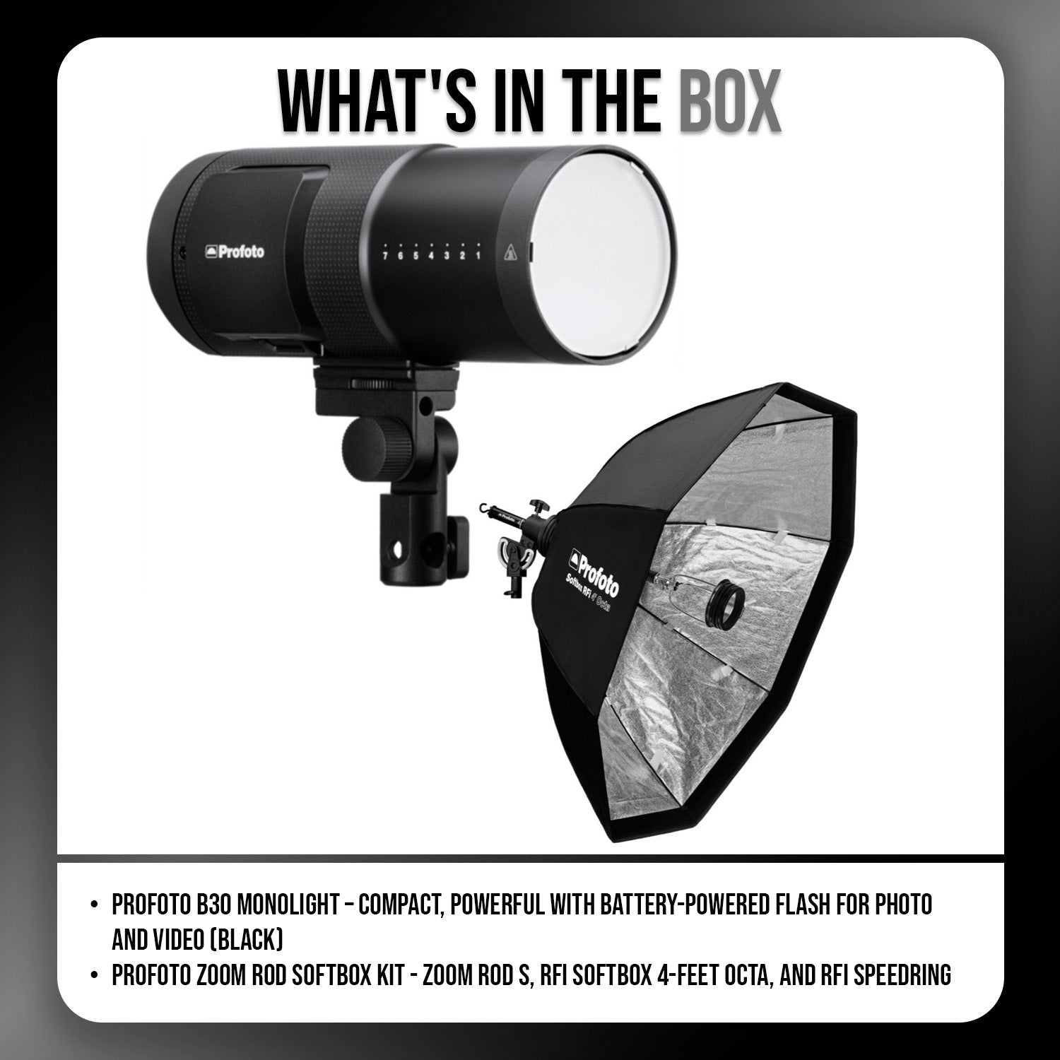 Profoto B30 Monolight Battery-Powered Flash Bundle with Zoom Rod Softbox Kit