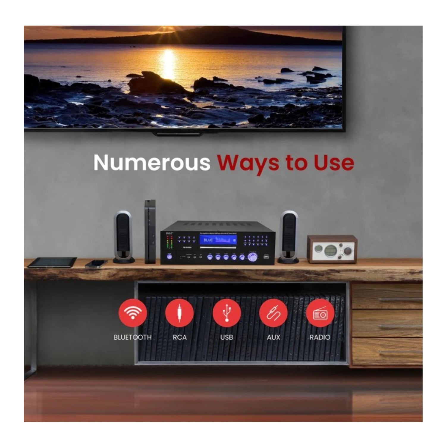 Pyle Pro 4-Speaker Bluetooth Home Theater Amplifier – CD/DVD Player, USB, AM/FM, AUX, Mic Inputs