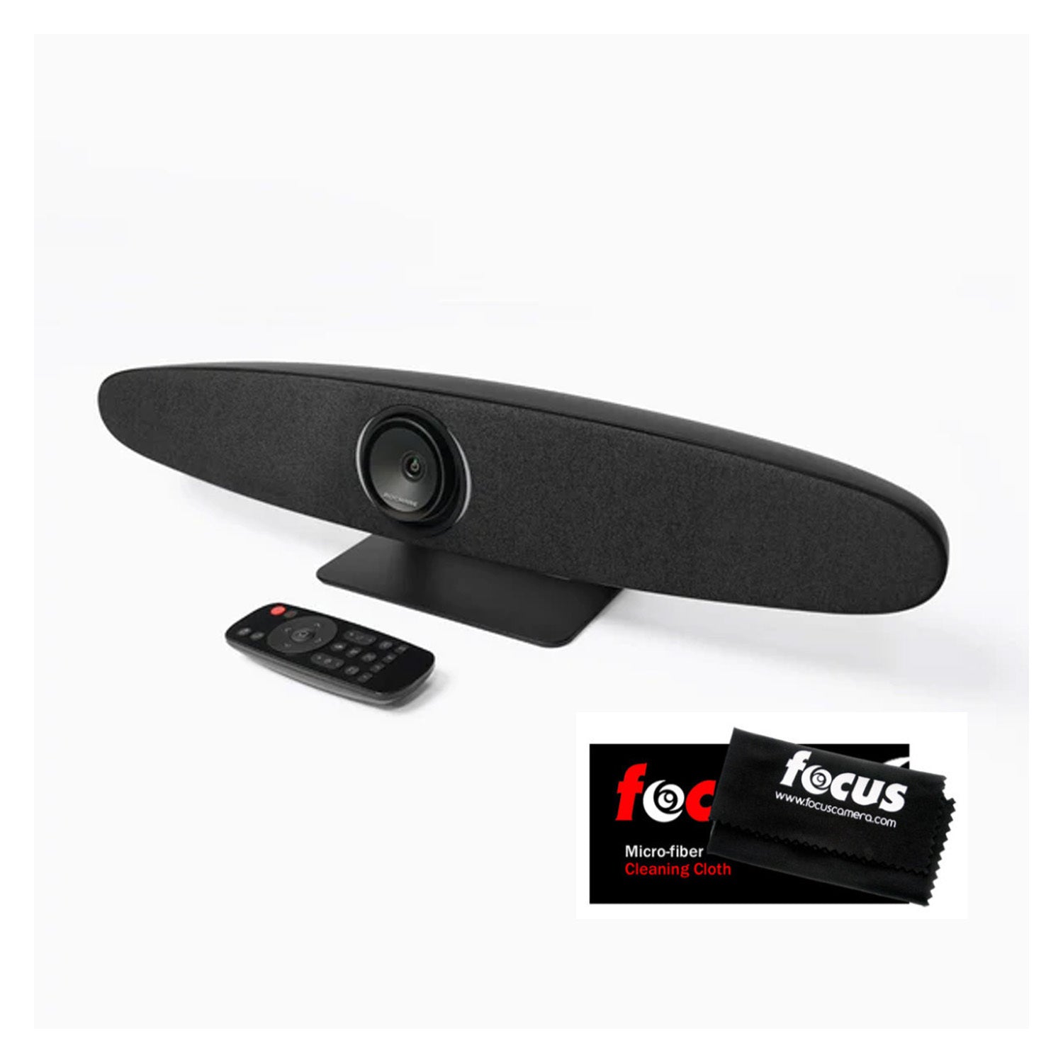 Rocware RC10 4K UHD USB Black Video Bar with 121-Degree Wide FOV and Focus Cleaning Cloth Bundle