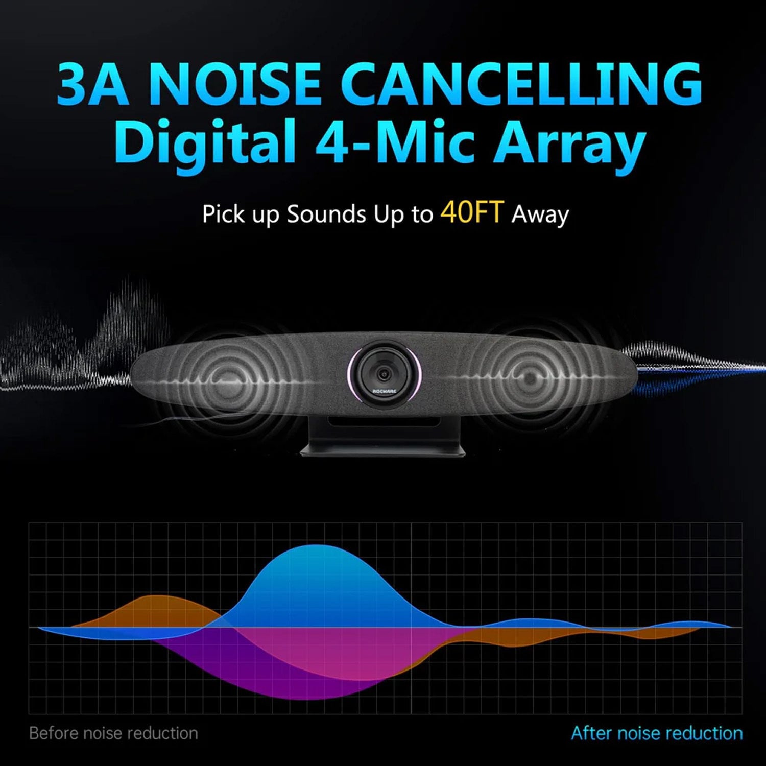 Rocware RC10 4K UHD USB Video Bar with 121-Degree Wide Field of View and Auto-Framing (Black)