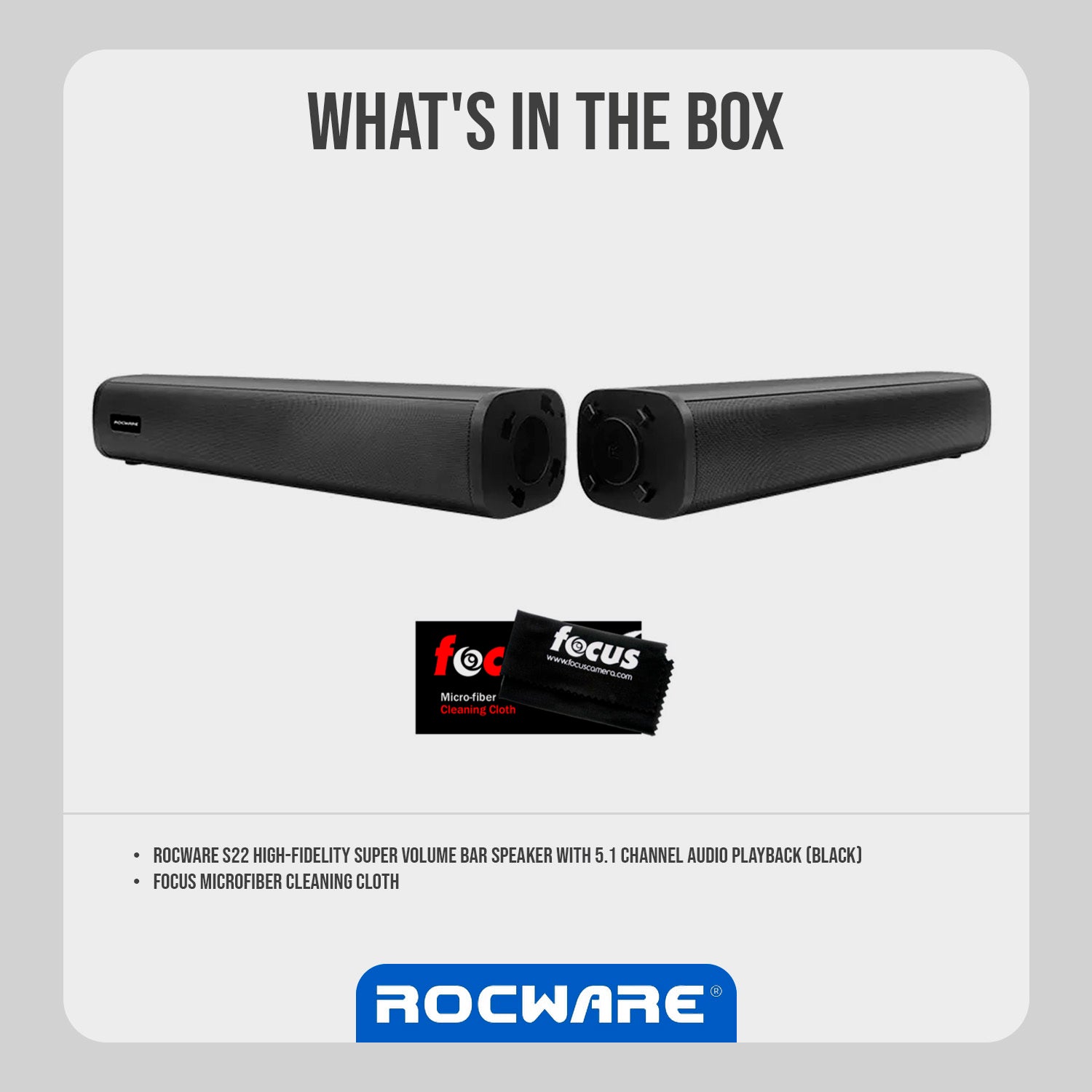 Rocware S22 High-Fidelity Super Volume Bar Speaker and Focus Microfiber Cleaning Cloth Bundle