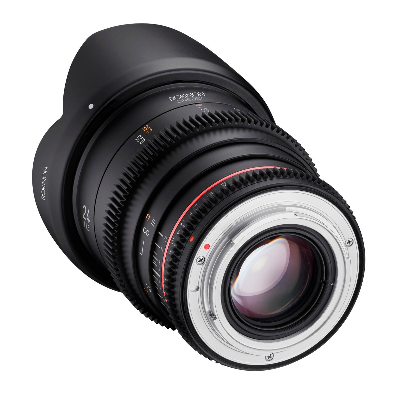 Rokinon expands its world renowned cine lenses with the addition of its new Cine DSX lens series. Boasting a new compact and sleek design with matte black finish, the Rokinon 24mm T1.5 Cine DSX High Speed Wide Angle Cine Lens offers features including a rounded nine-blade aperture for even smoother circular bokeh. With full frame coverage, fast T1.5 apertures, and optical designs utilizing special elements, this lens supports the increased capabilities of the latest DSLR, Mirrorless, and Cine camera systems. Rokinon Cine DSX lenses are the perfect choice for independent filmmakers, project directors, and professional cinematographers. This 24mm wide angle lens comes with a Canon EF mount.