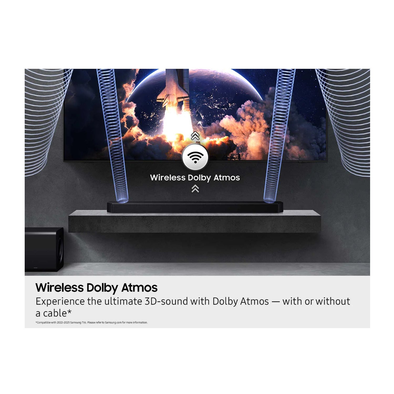 Expand your setup to true surround sound with optional rear speakers that connect wirelessly to your soundbar for an enhanced cinematic experience. You can also get additional sound modes like Private Rear Sound and Sound Grouping